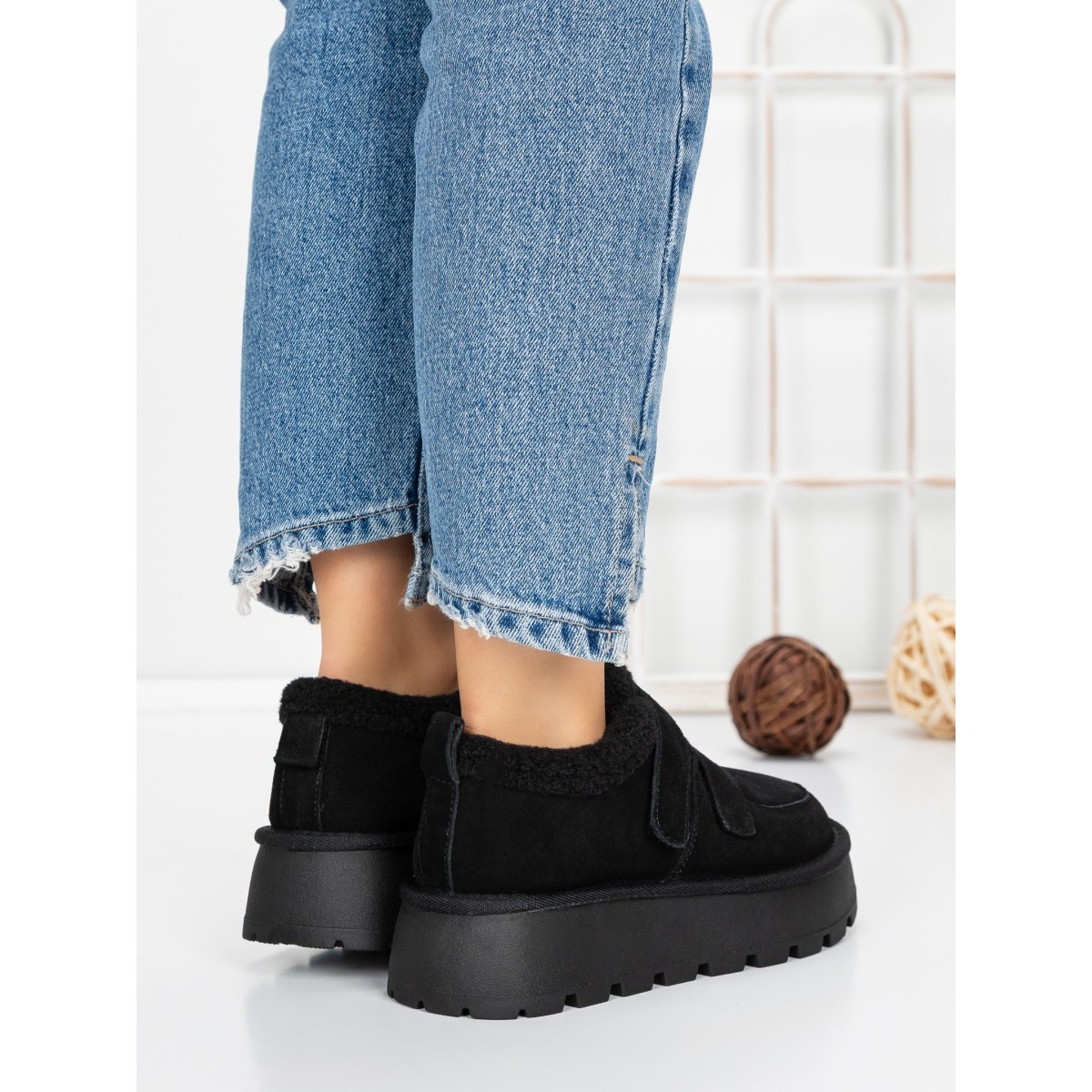 Ghete Dama din piele naturala 5W92 Negru | Pantoful