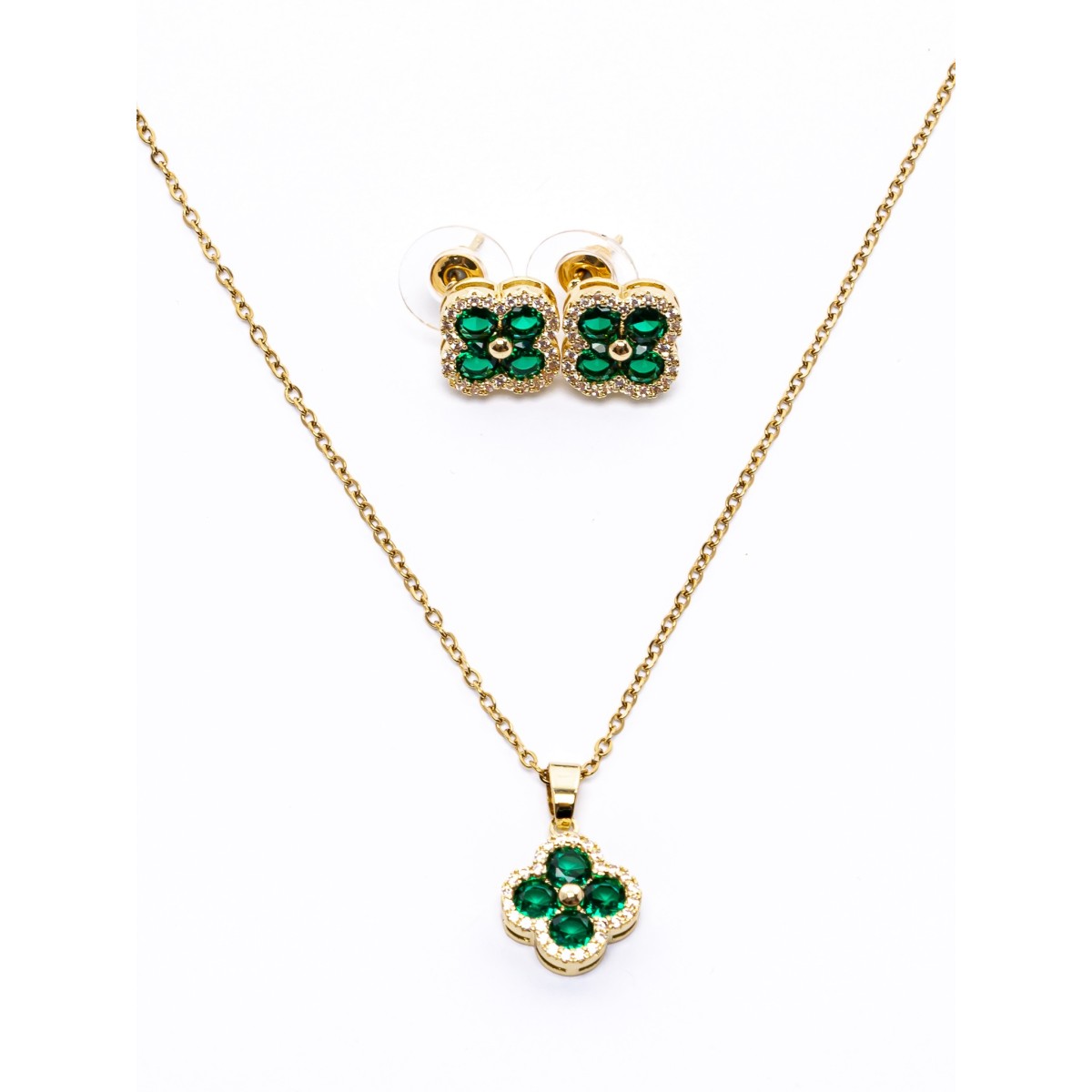 Set Colier + Cercei de Dama CLR003 Auriu-Verde | Mei
