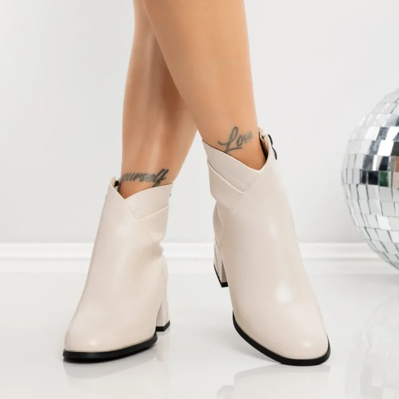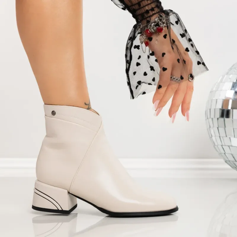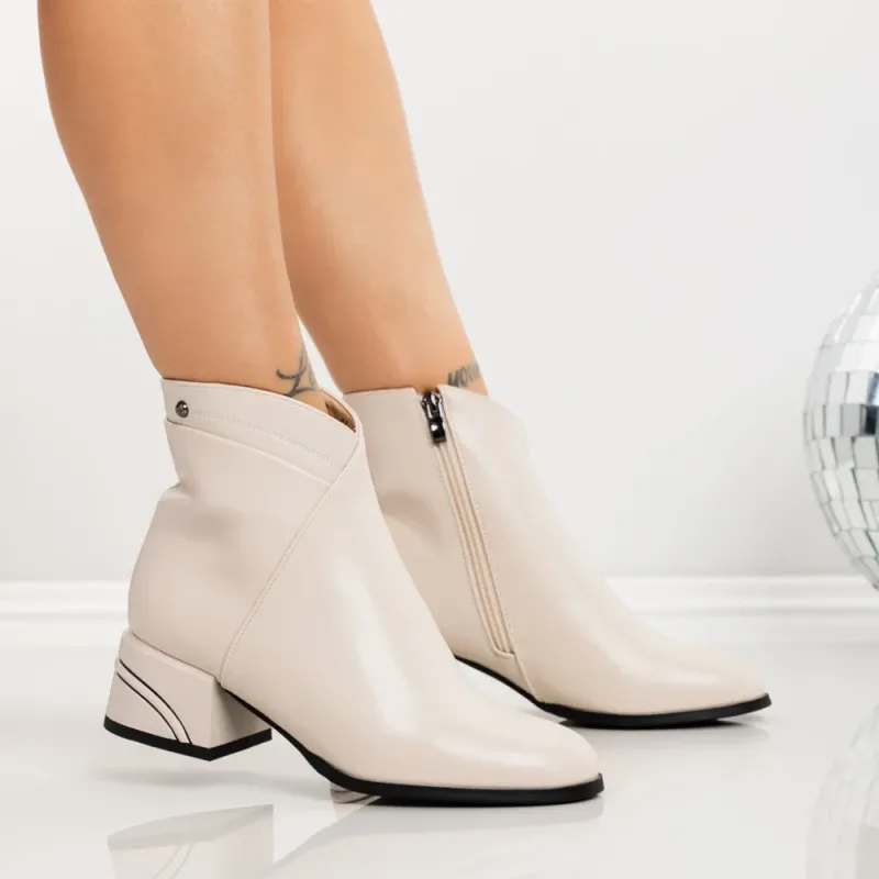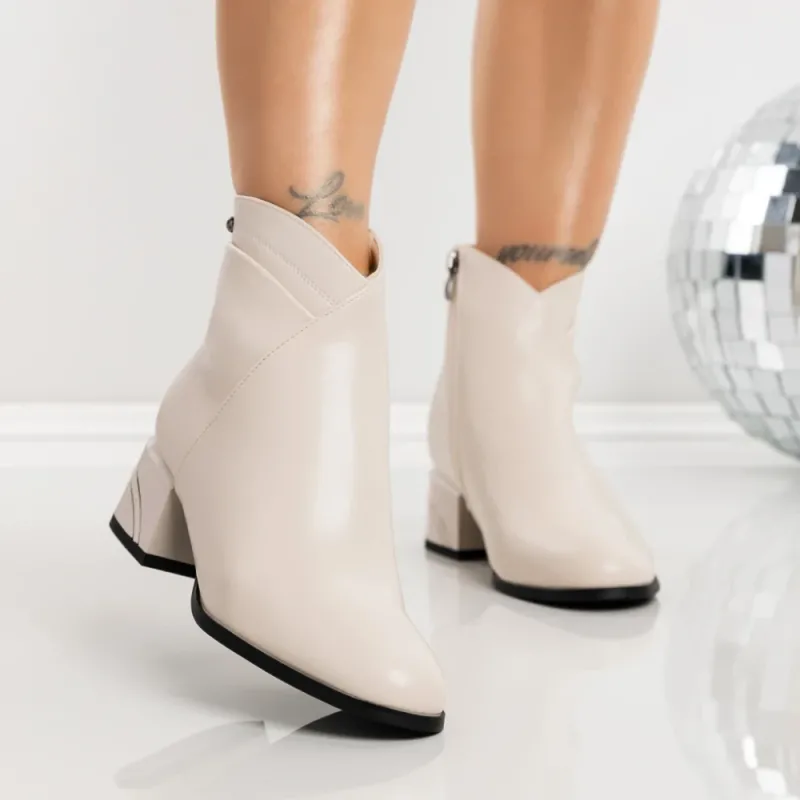 Botine Dama cu Toc gros 3AL82 Bej | Mei » Reina.Ro