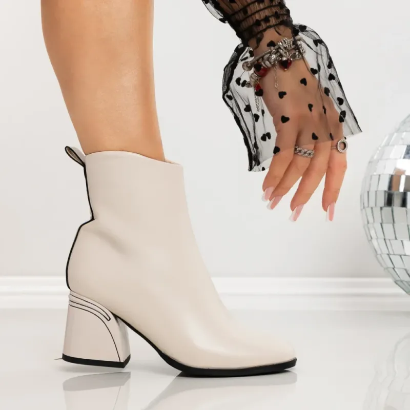 Botine Dama cu Toc gros 3AL85 Bej | Mei