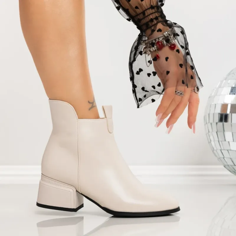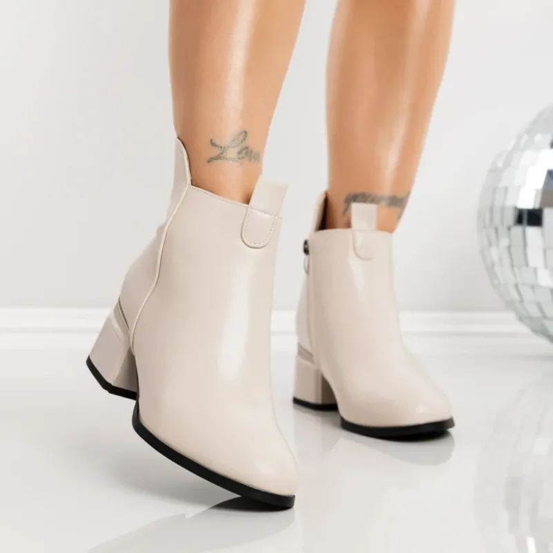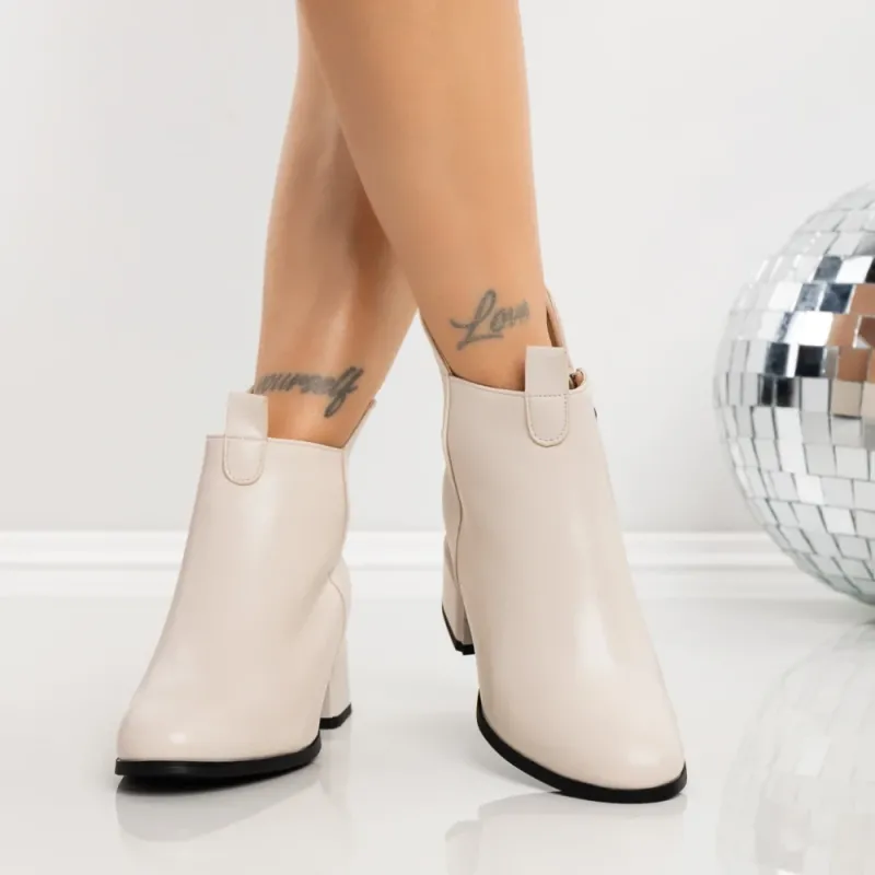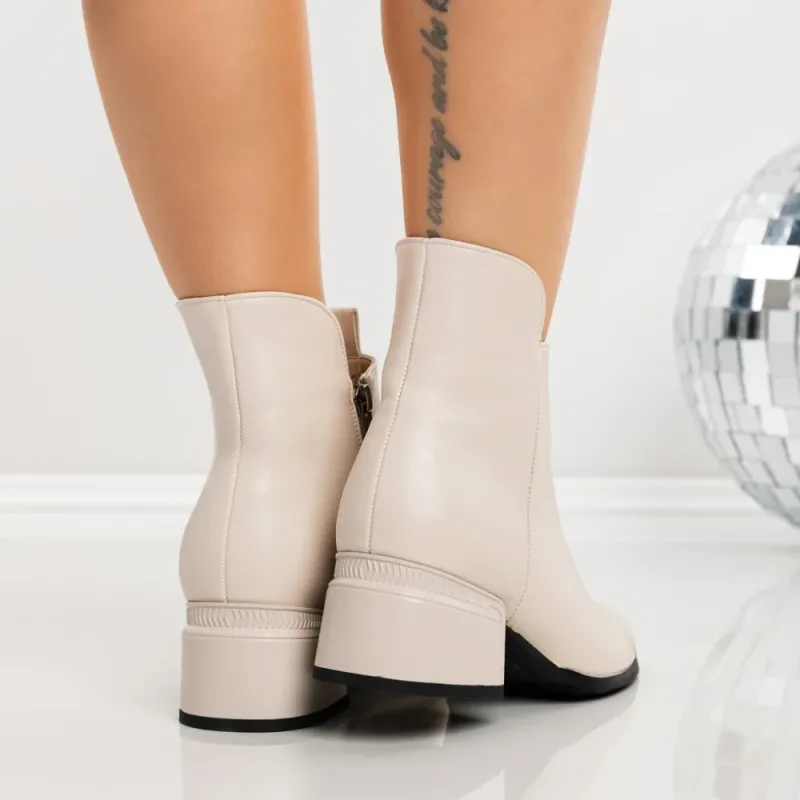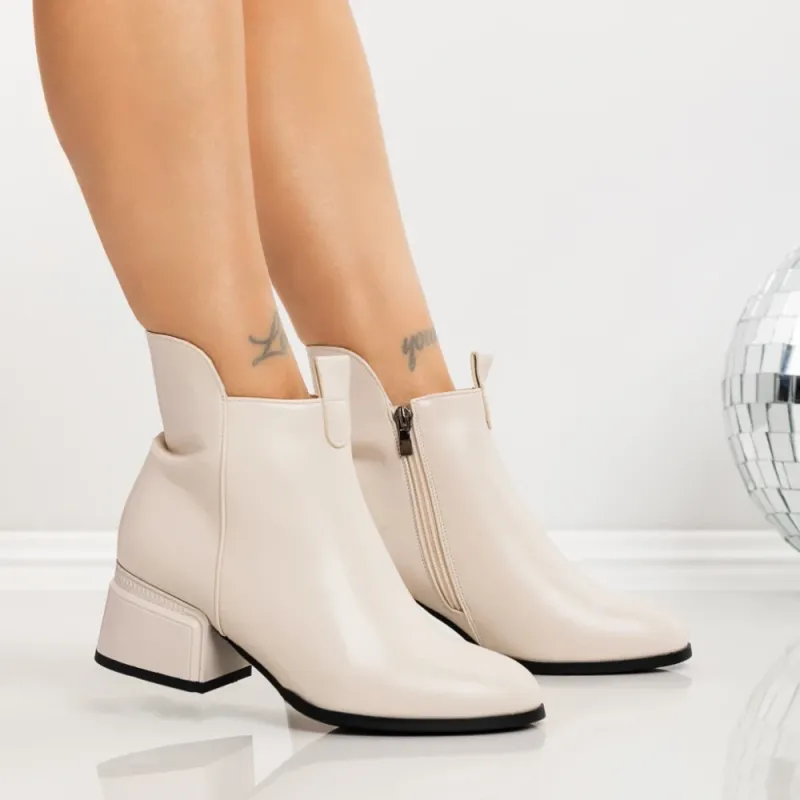 Botine Dama cu Toc gros 3AL86 Bej | Mei » Reina.Ro