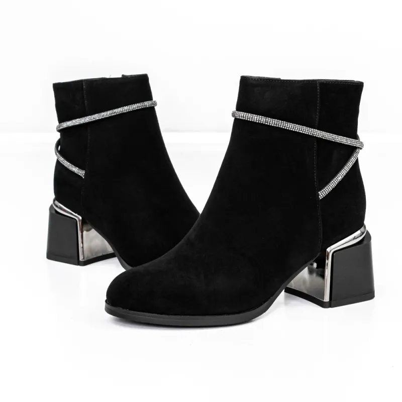 Botine Dama cu toc gros M07-01A Negru » Reina.Ro