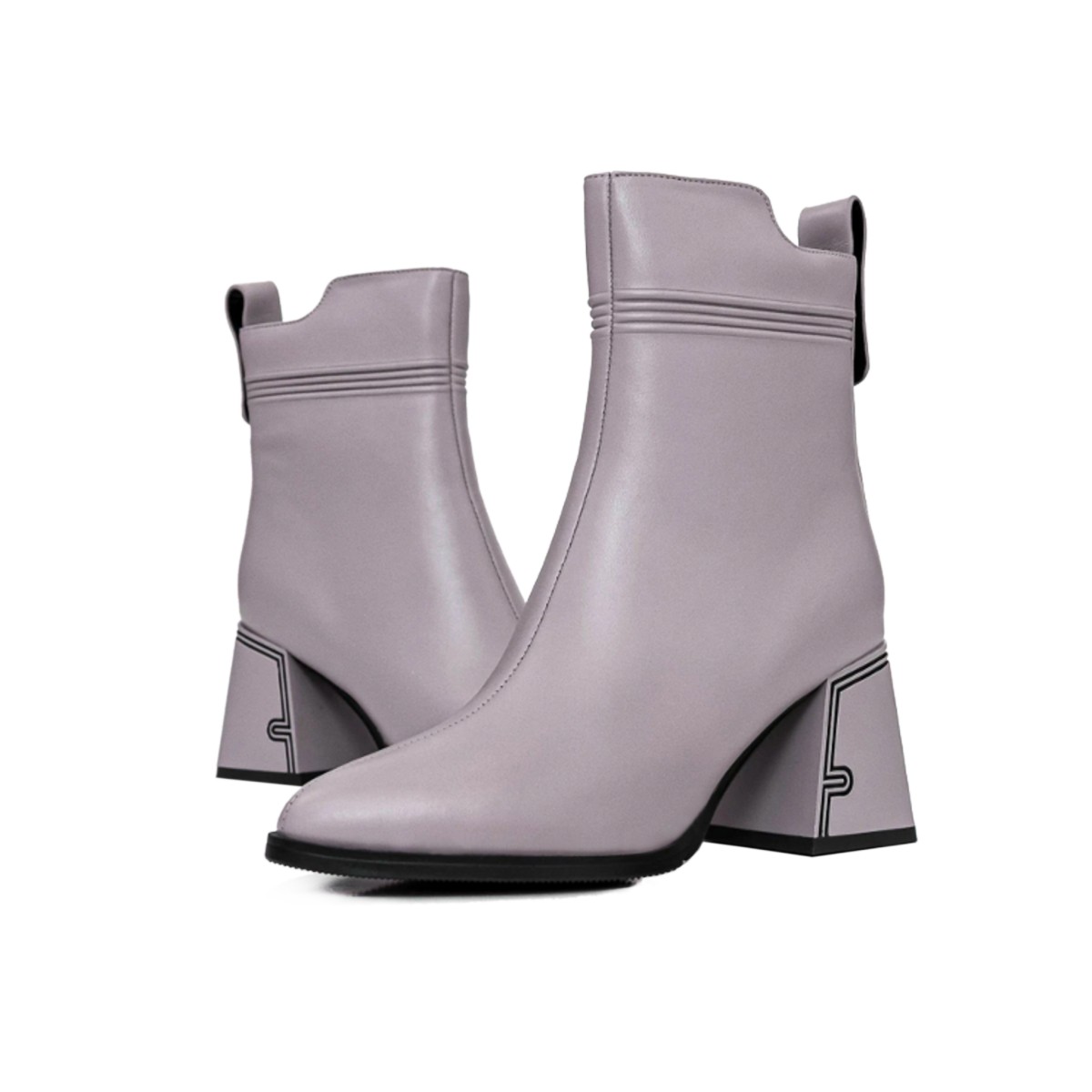 Botine Dama cu toc gros K107-55-B81B Gri Reina