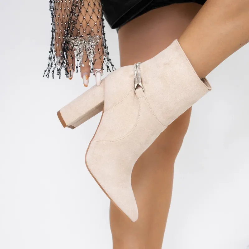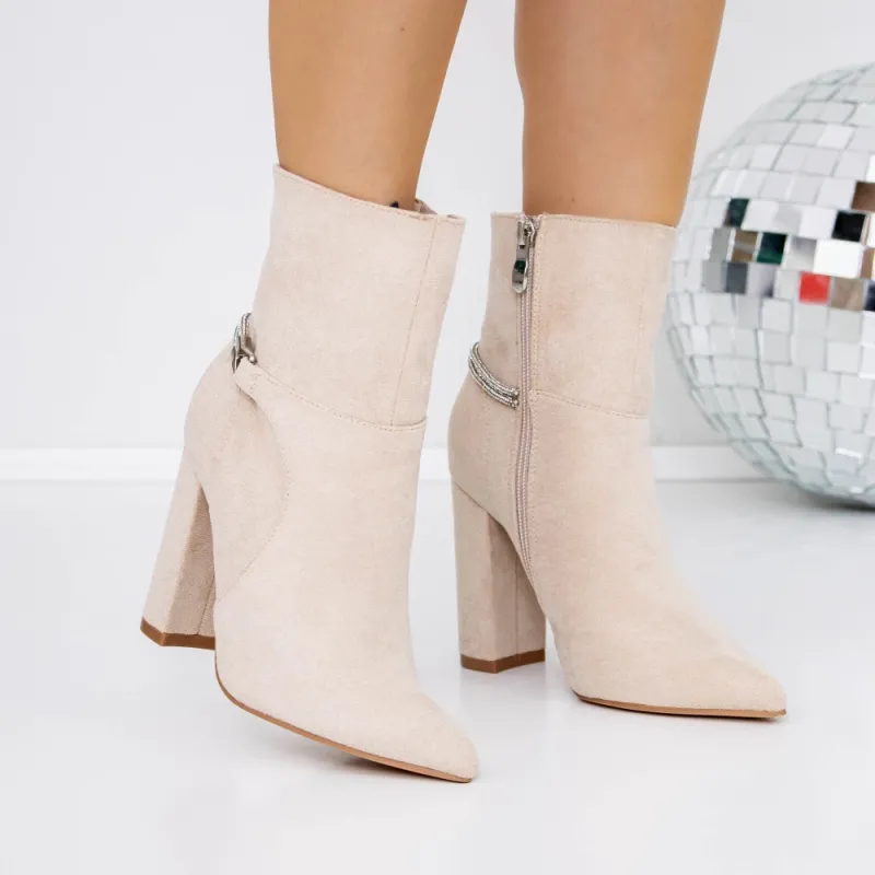 Botine Dama cu Toc gros 3XKK29 Bej » Reina.Ro