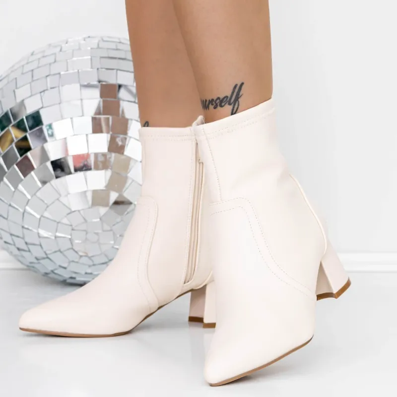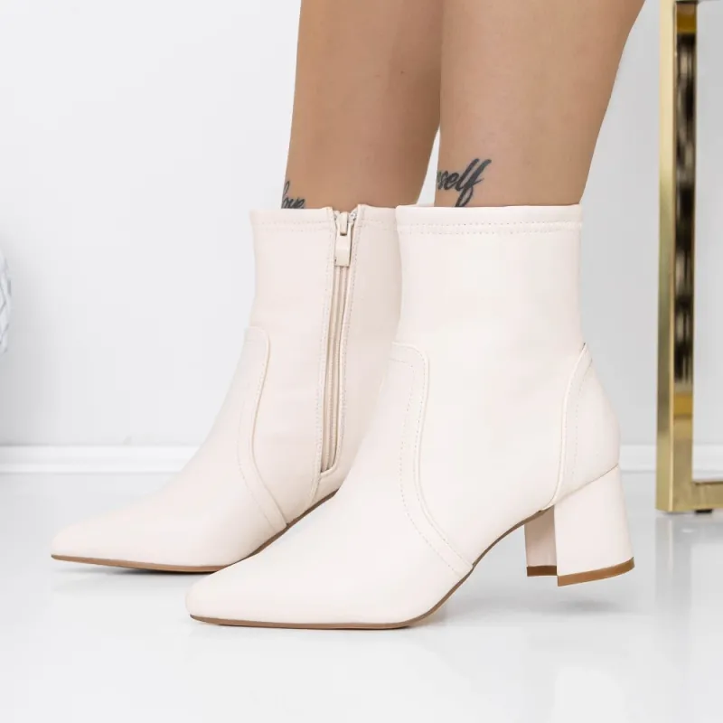 Botine Dama cu Toc gros 3ZYT2 Bej deschis | Reina
