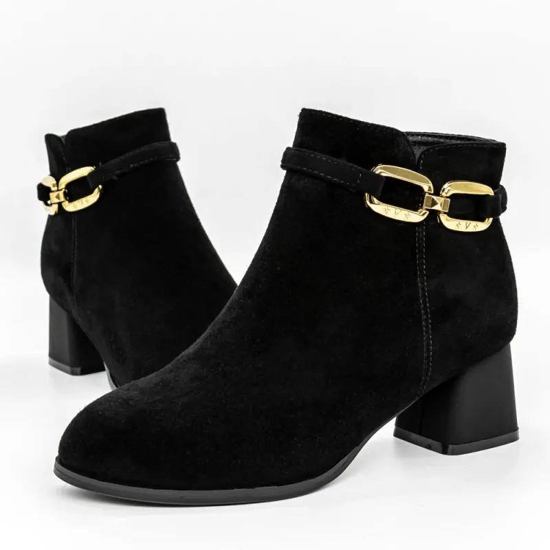 Botine Dama cu Toc gros 5256 Negru | Reina