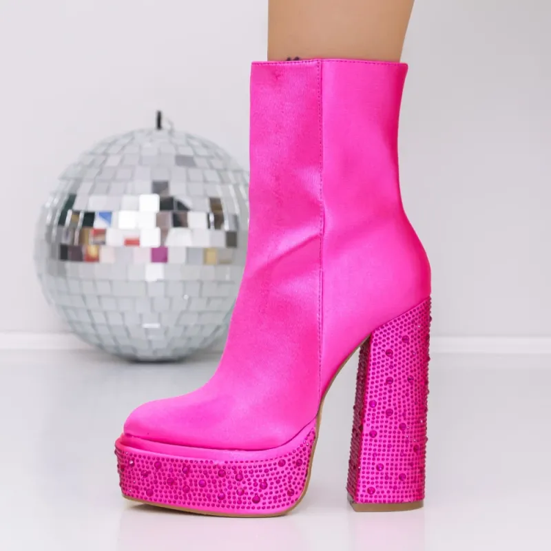 Botine Dama cu Toc gros si platforma 3KV11 Roz Reina