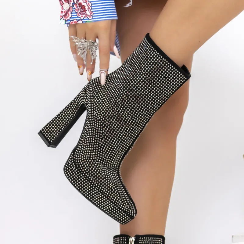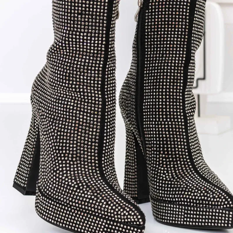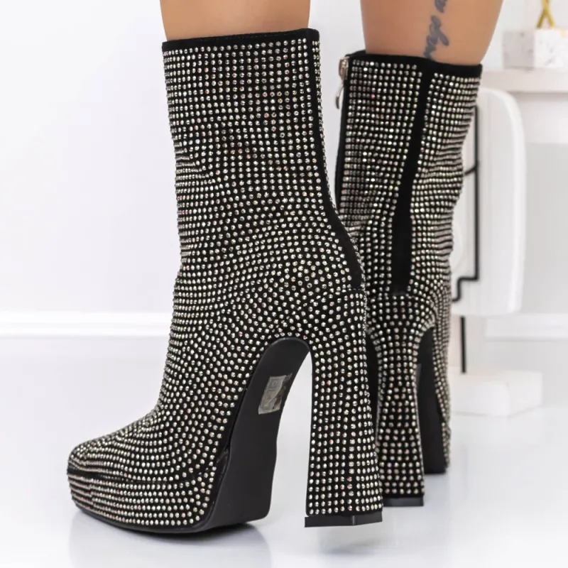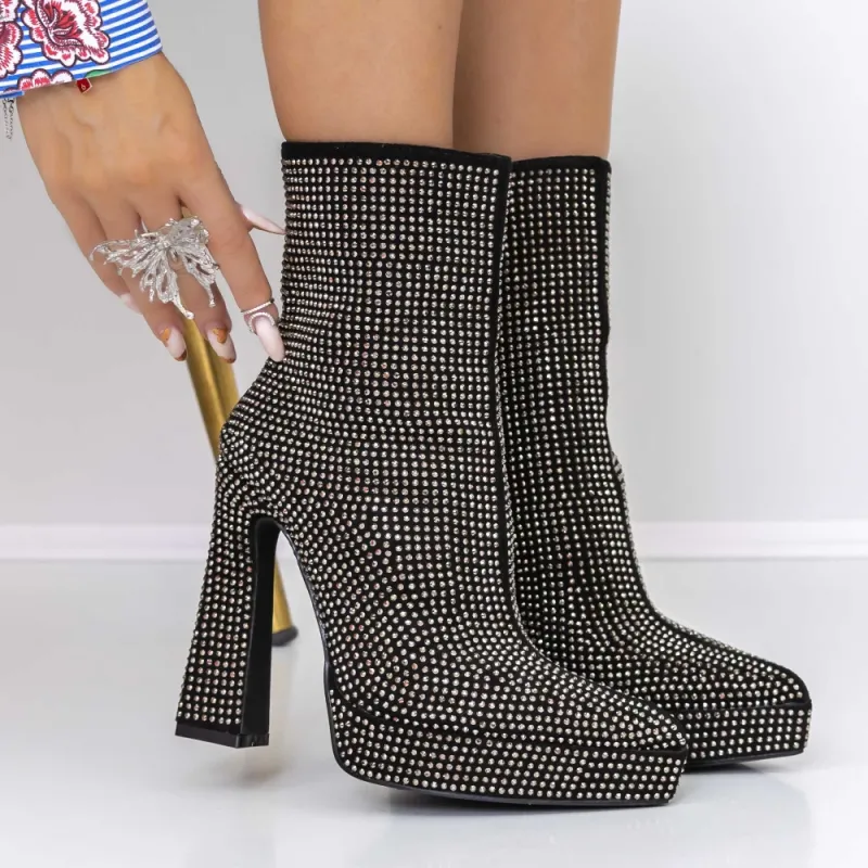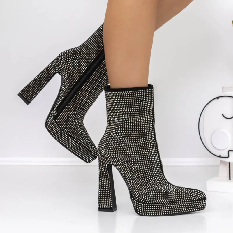 Botine Dama cu Toc gros si platforma 3KV9 Negru-Guncolor | Reina