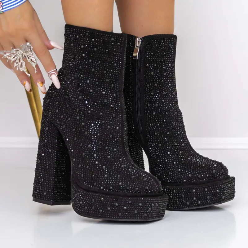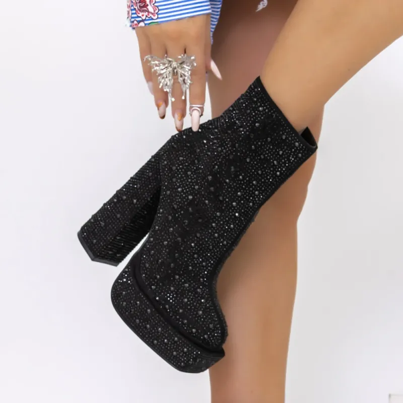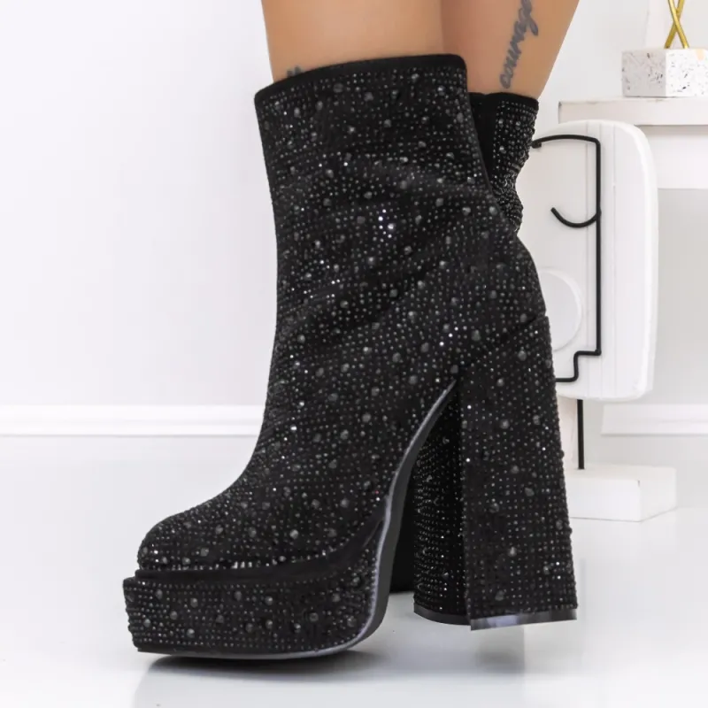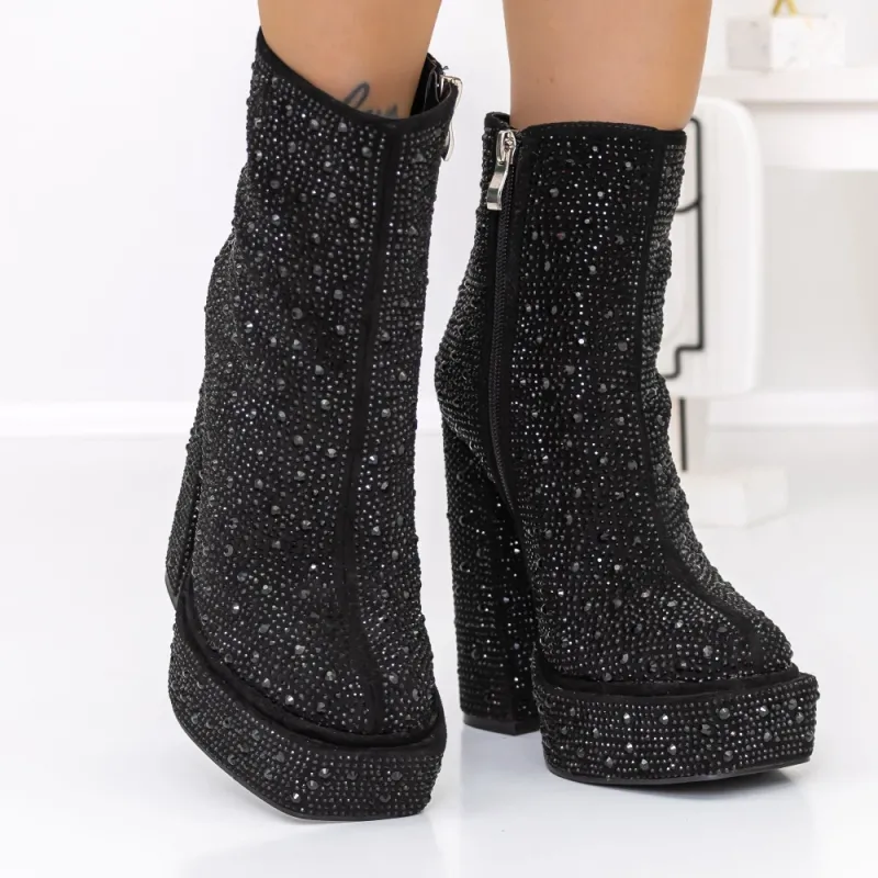 Botine Dama cu Toc gros si platforma 3KV10 Negru | Reina