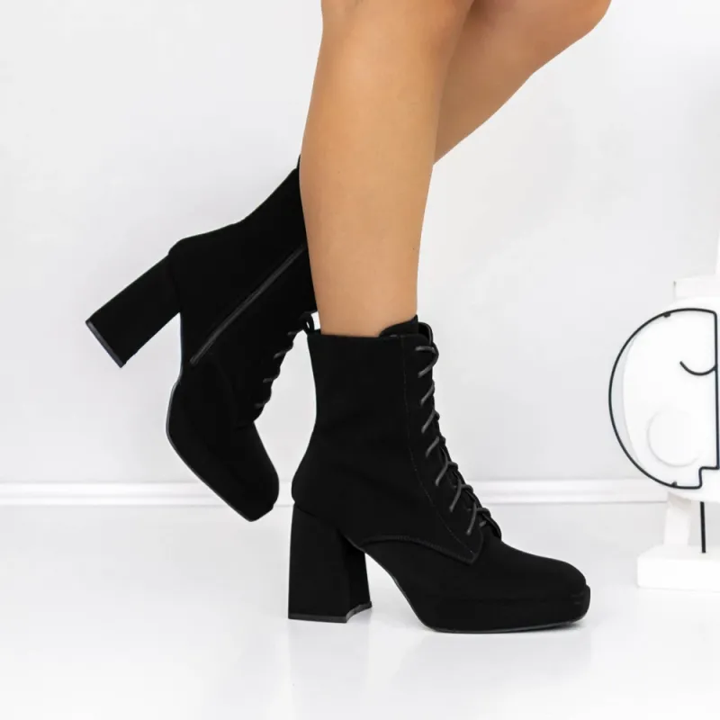 Botine Dama cu Toc gros si platforma 3KV20 Negru | Reina