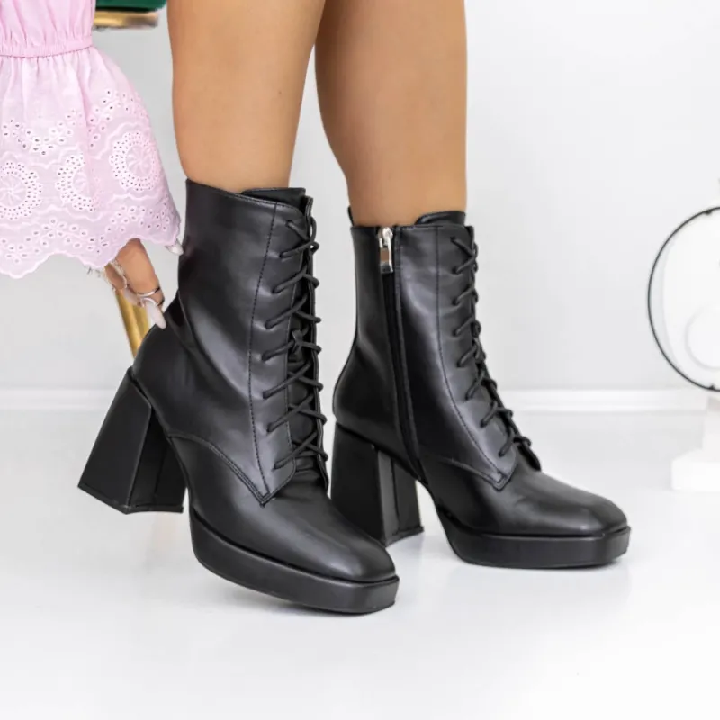 Botine Dama cu Toc gros si platforma 3KV20 Negru | Reina