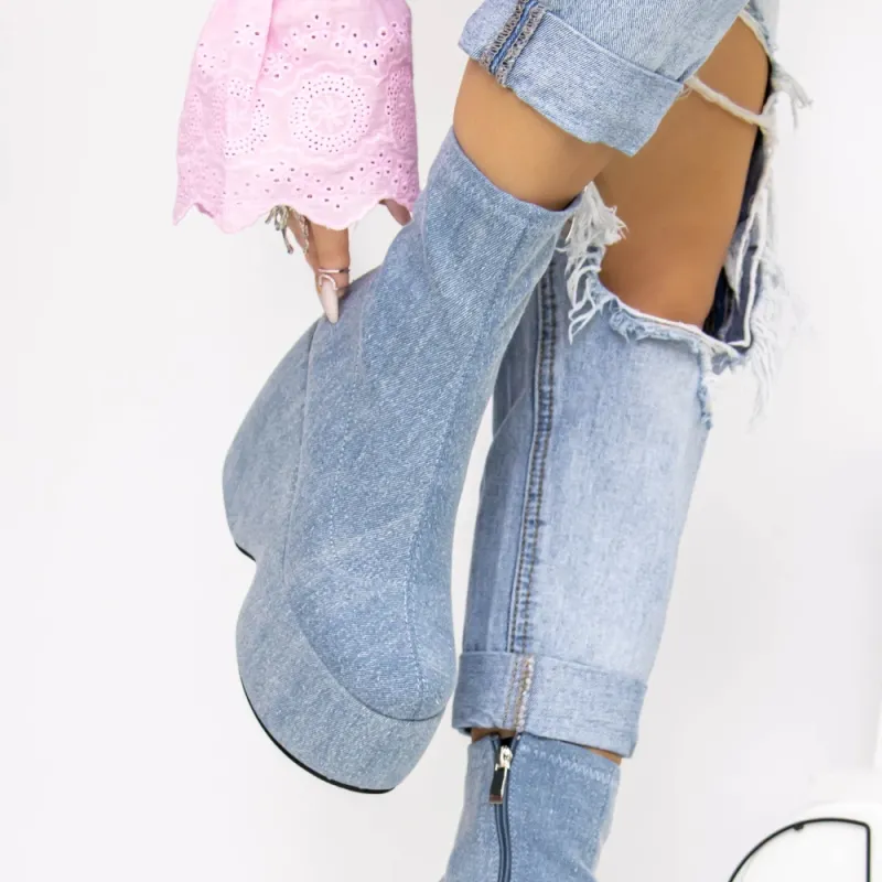 Botine Dama cu Platforma 3MN1 Albastru deschis | Reina