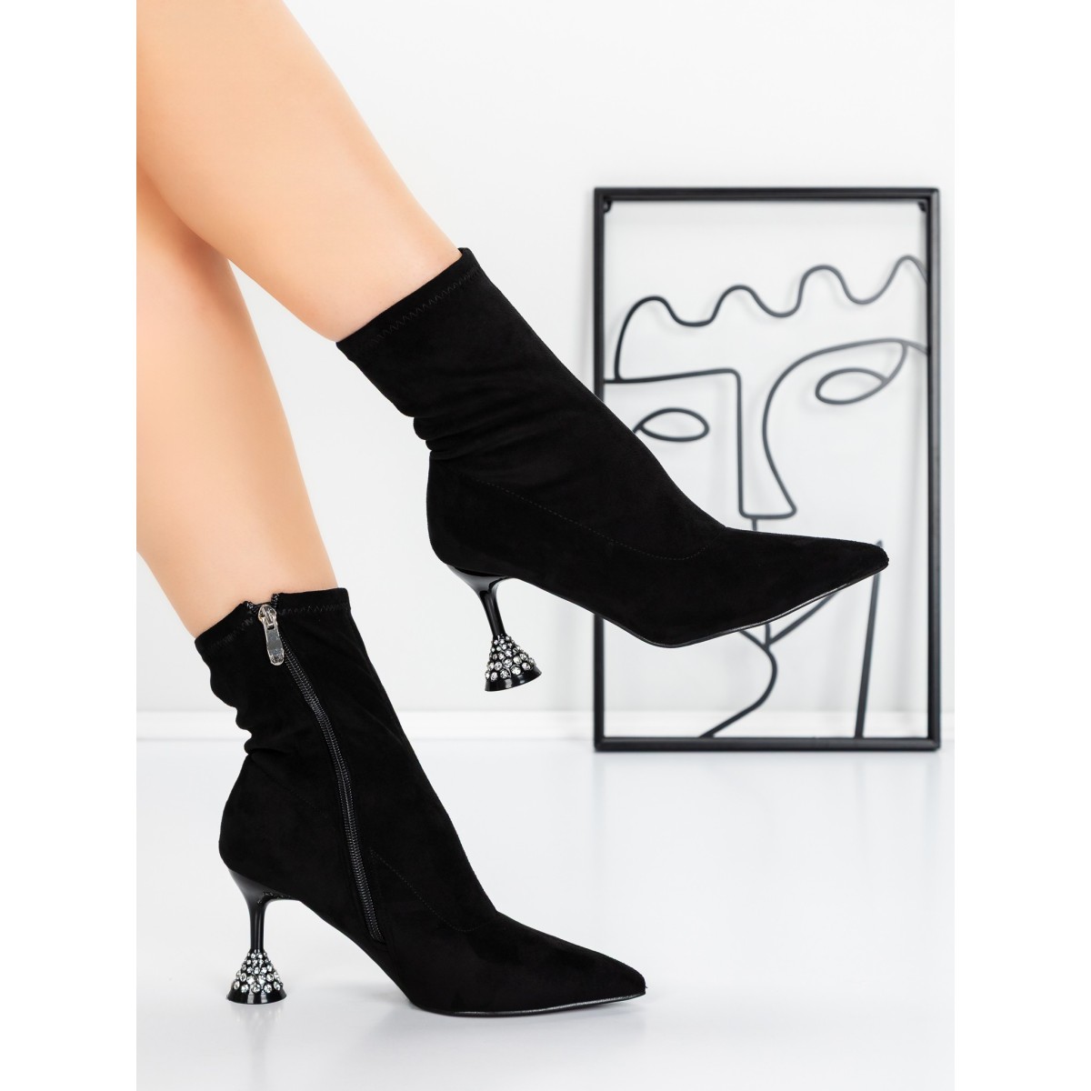 Botine cu Toc Subtire 5XKK67 BLACK | MEI