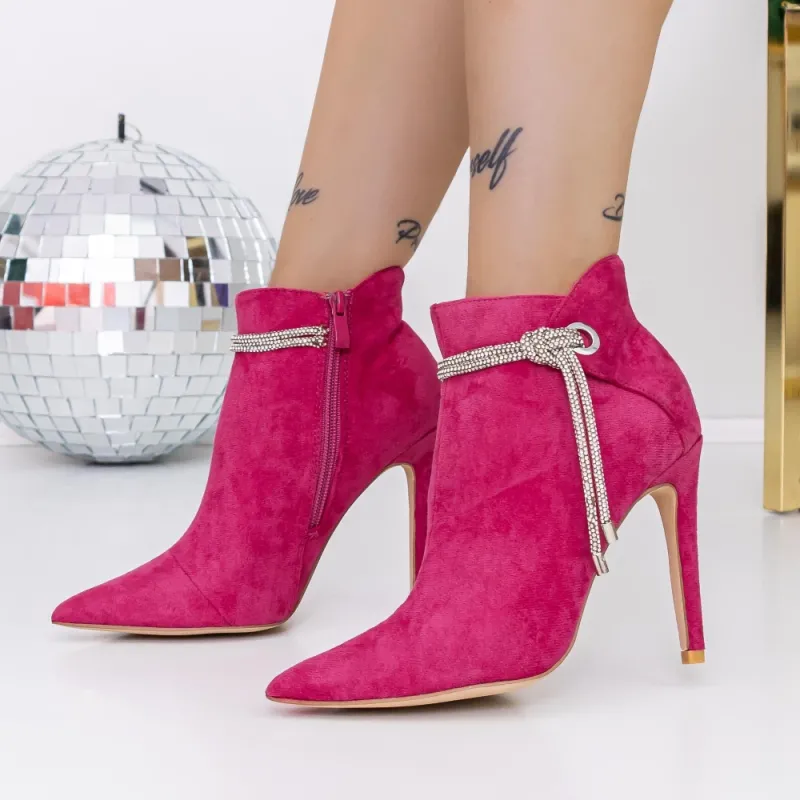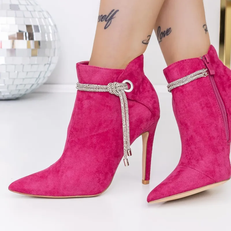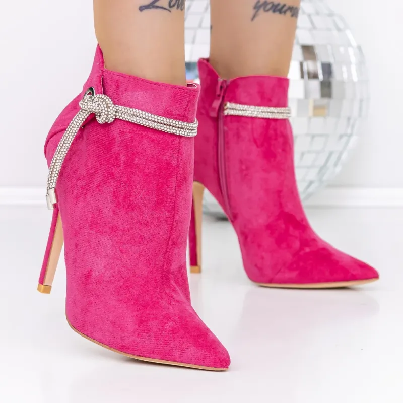 Botine Dama cu Toc subtire 3SYX32 Roz Reina