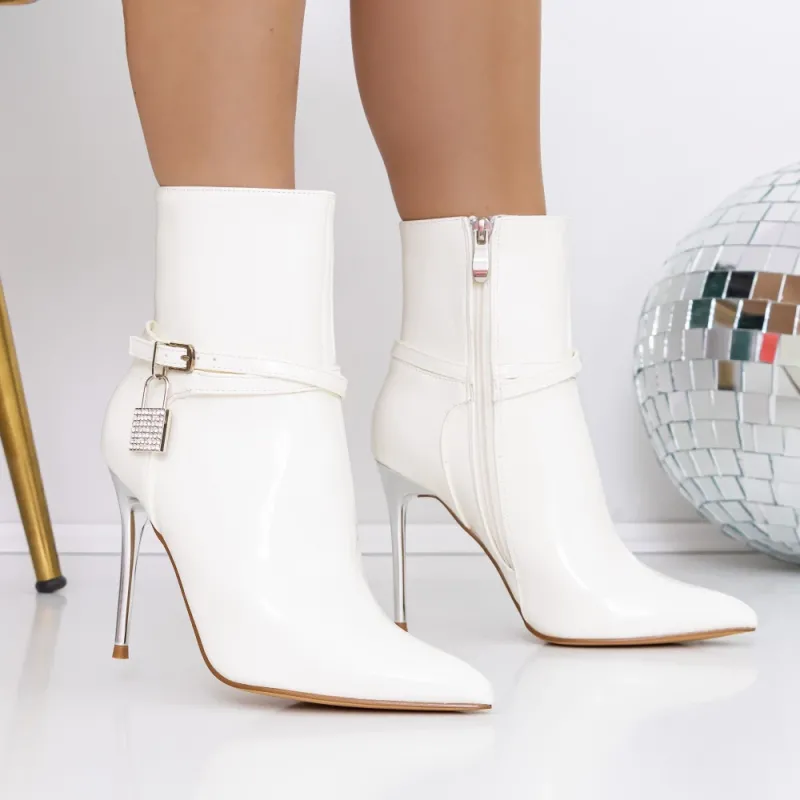 Botine Dama cu Toc subtire 3XKK31 Alb » Reina.Ro
