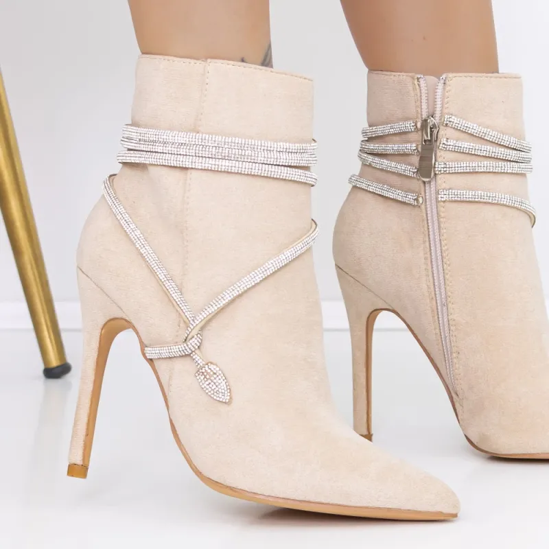 Botine Dama cu Toc subtire 3XKK32 Bej | Reina