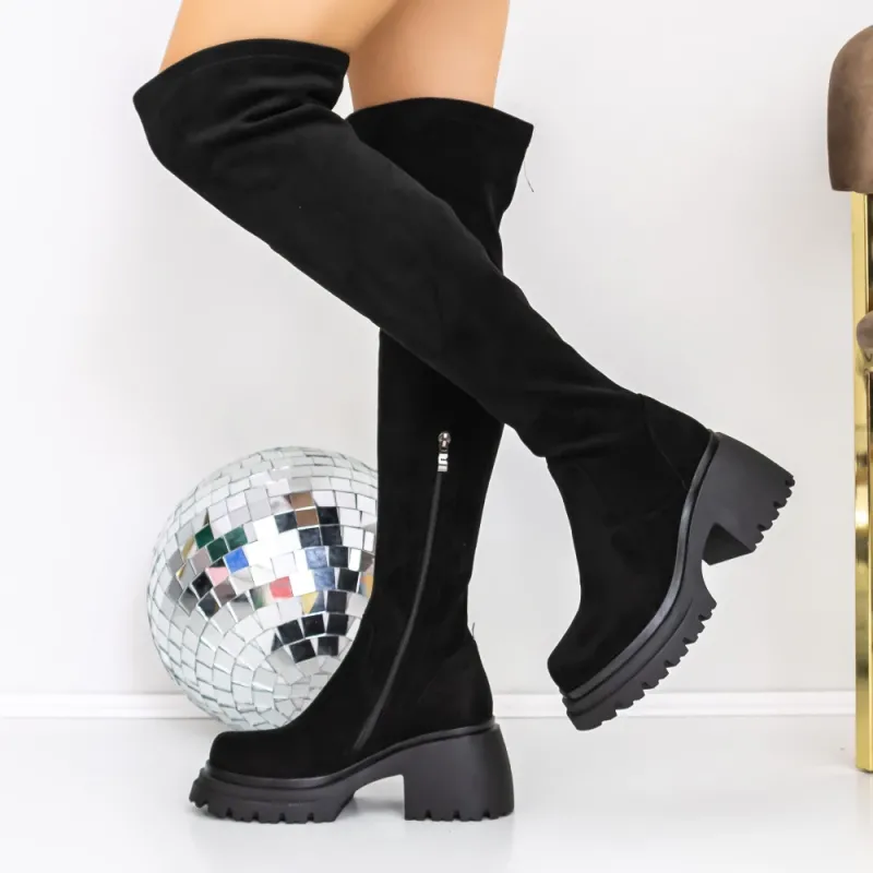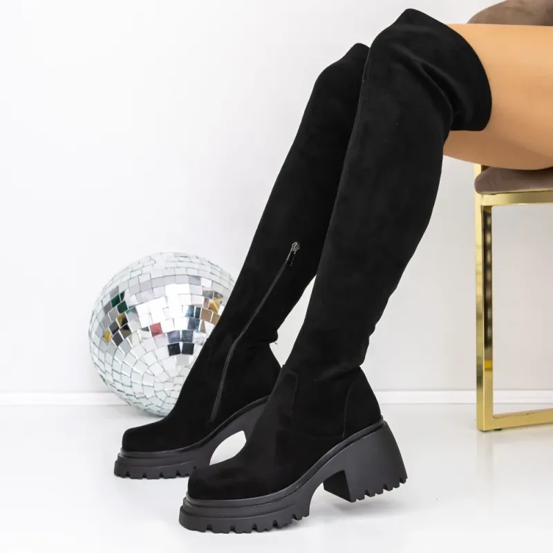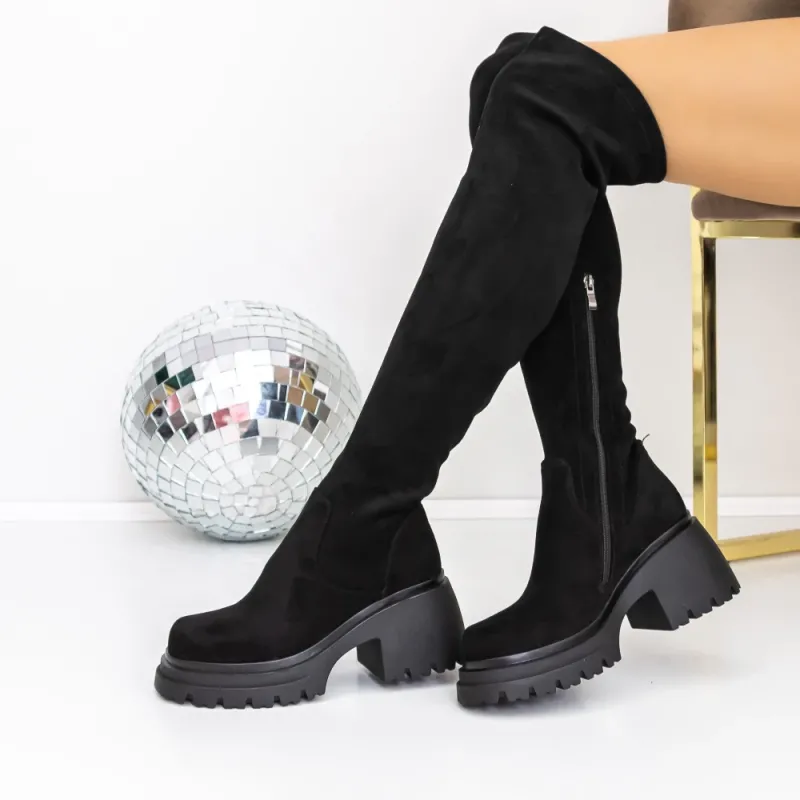 Cizme Dama cu Platforma 3KD12 Negru | Reina