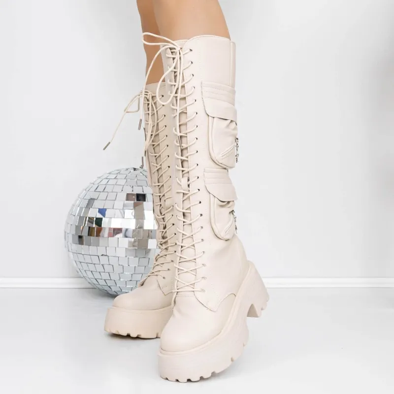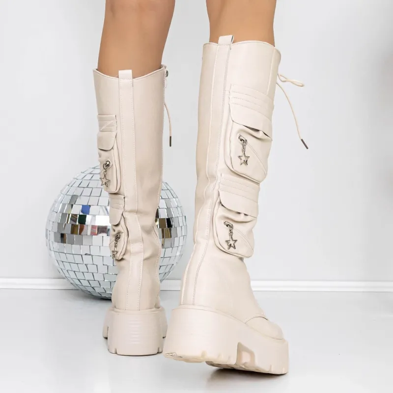 Cizme Dama cu Platforma 3WL21 Bej | Reina