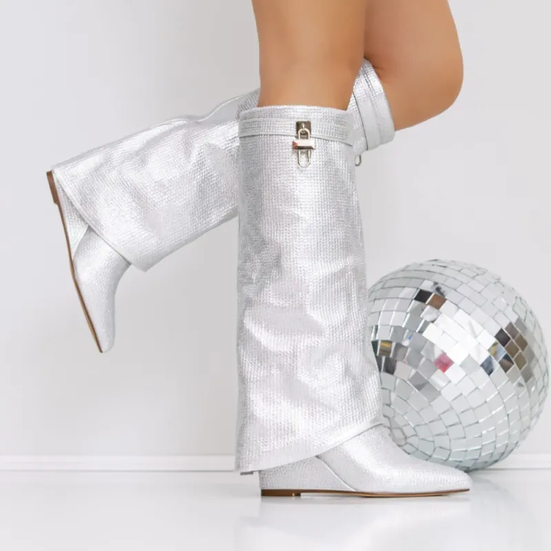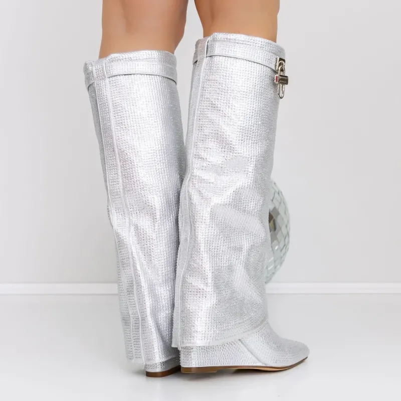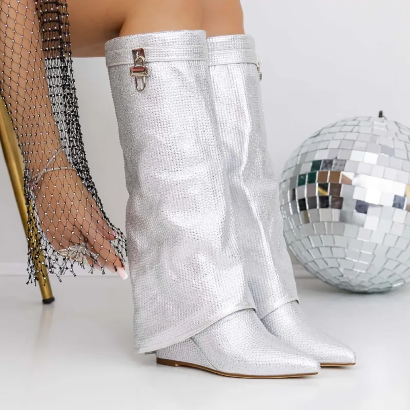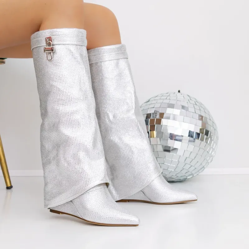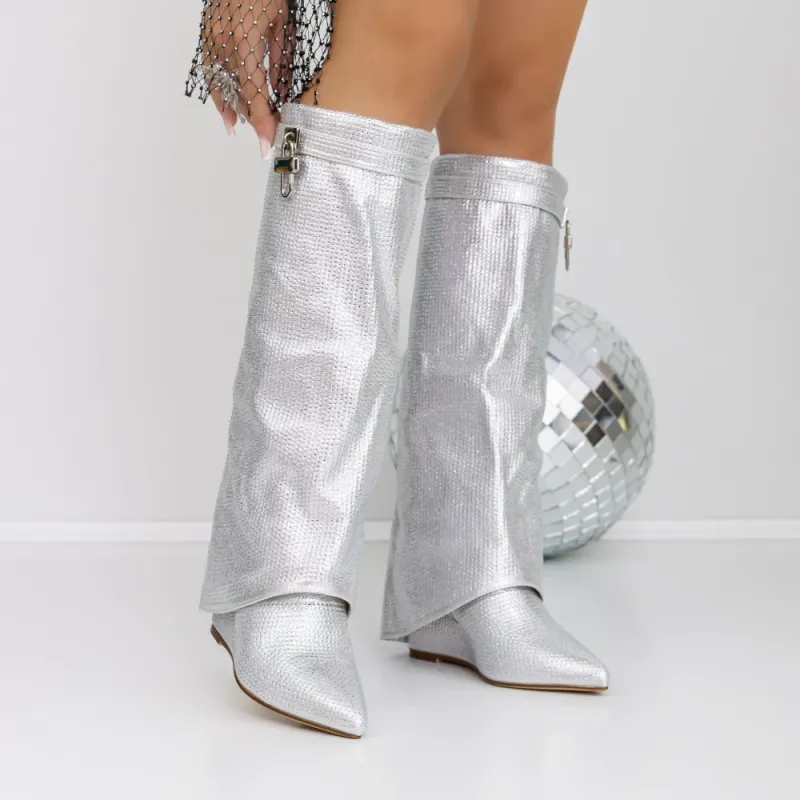 Cizme Dama cu Platforma 3JF7 Argintiu | Reina
