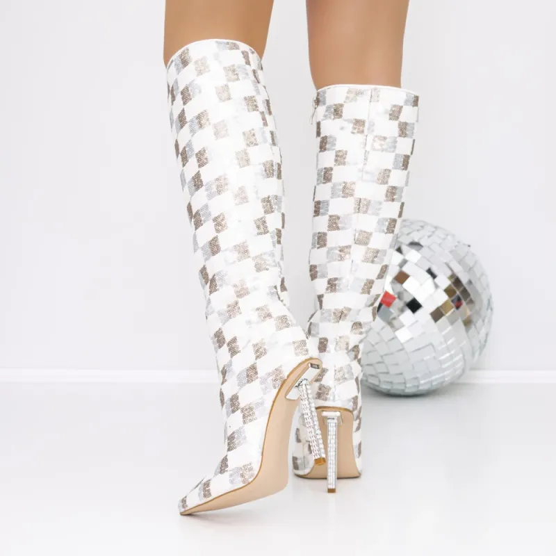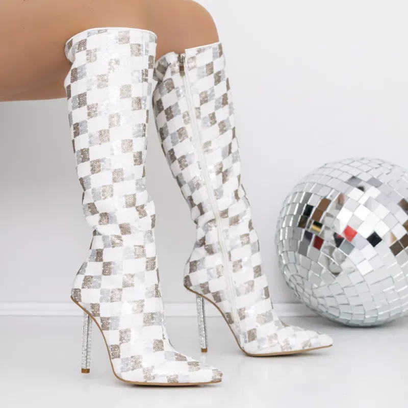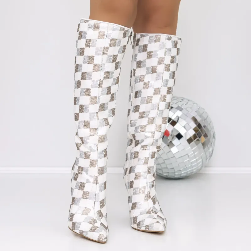 Cizme Dama cu Toc subtire 3ZW7 Alb | Reina