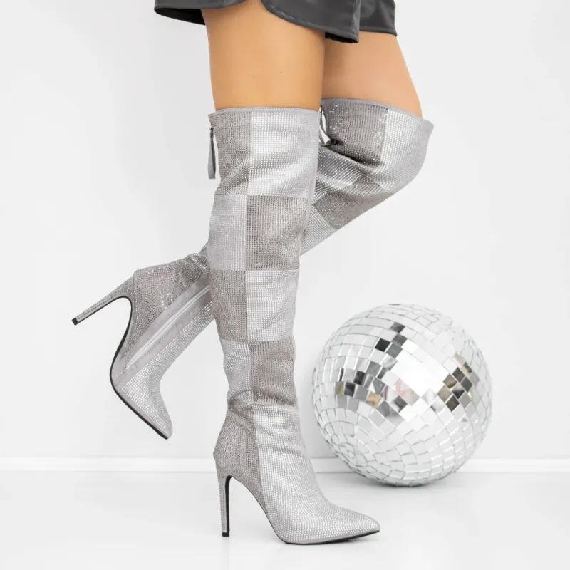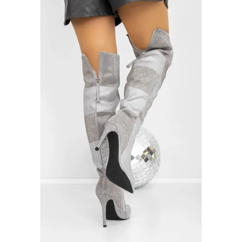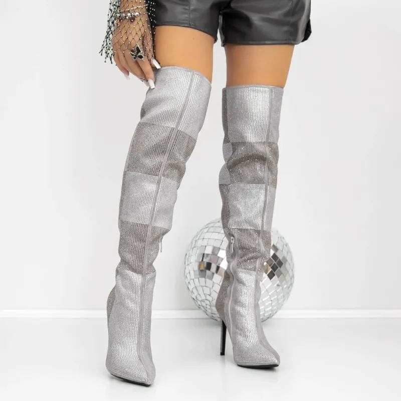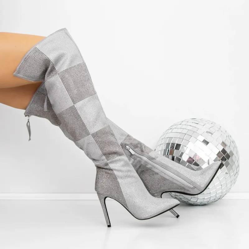 Cizme Dama cu Toc subtire 3JF12 Gri | Reina
