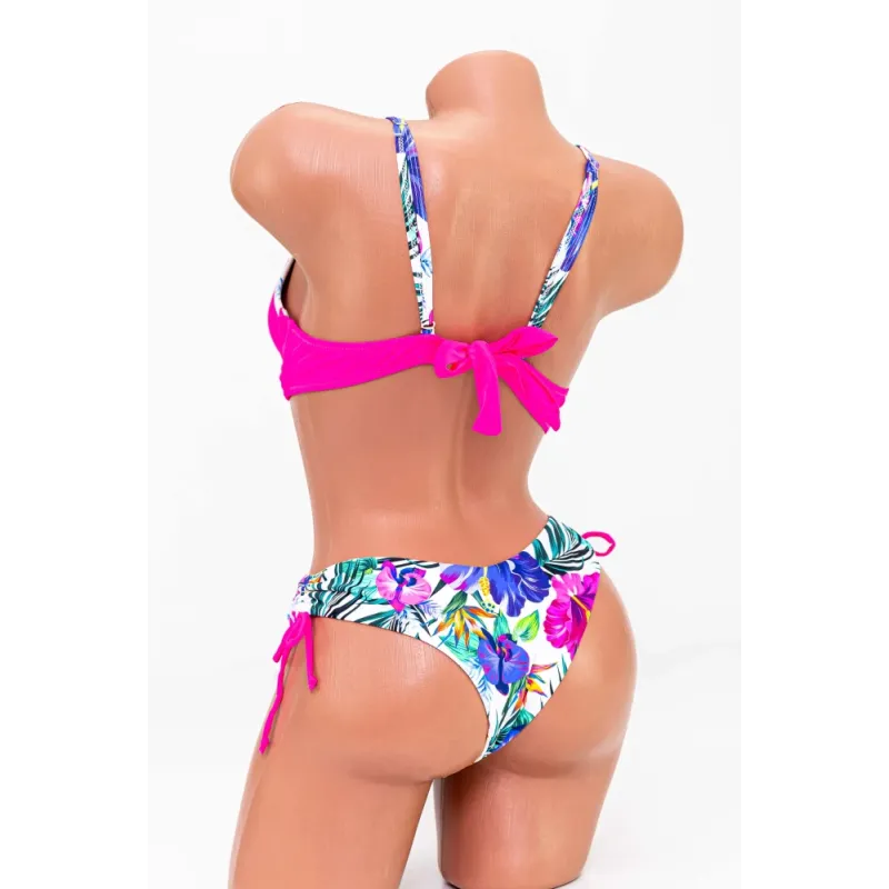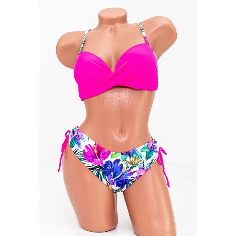Costum de Baie Dama 2 Piese H20-2 Roz-Alb Meina
