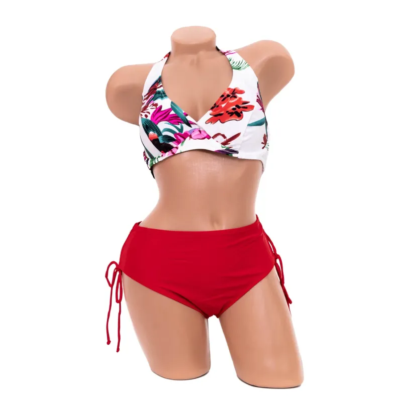 Costum de Baie Dama 2 Piese L330 Alb-Rosu | Reina