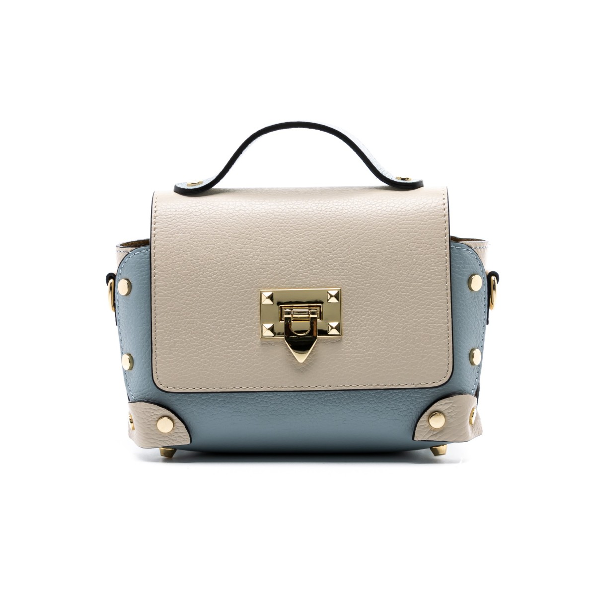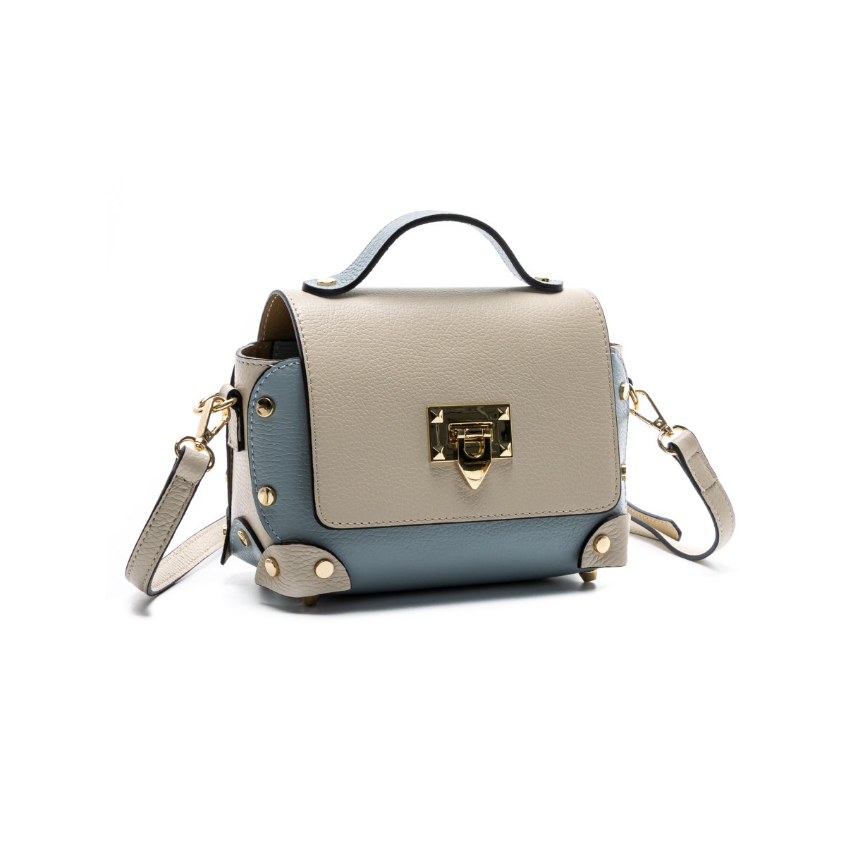 Geanta de mana din Piele Naturala GD32 Crem-Albastru | Forseti