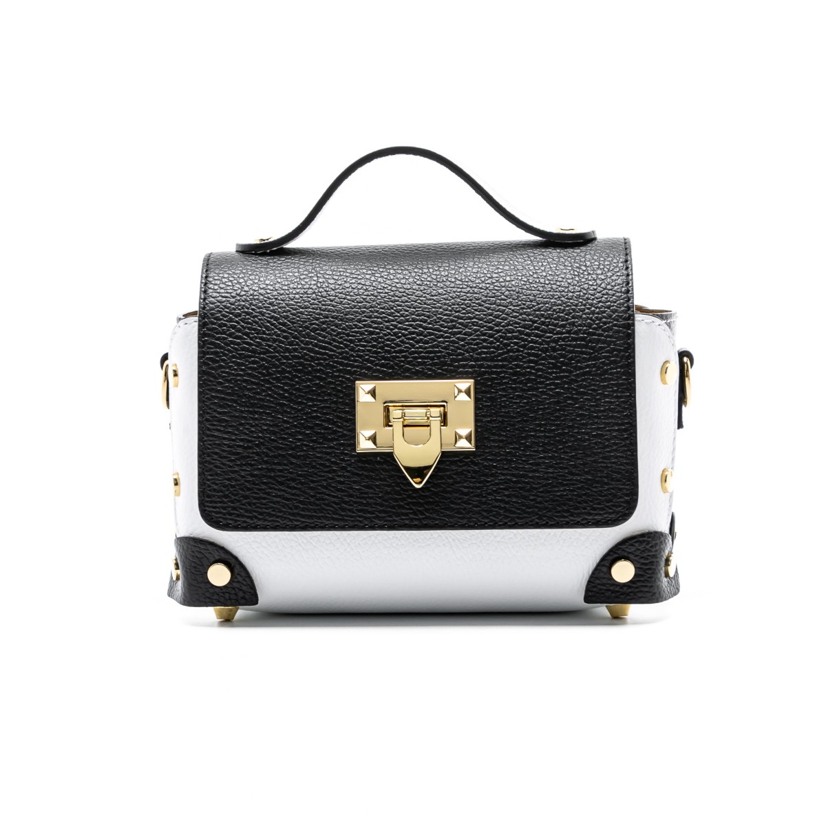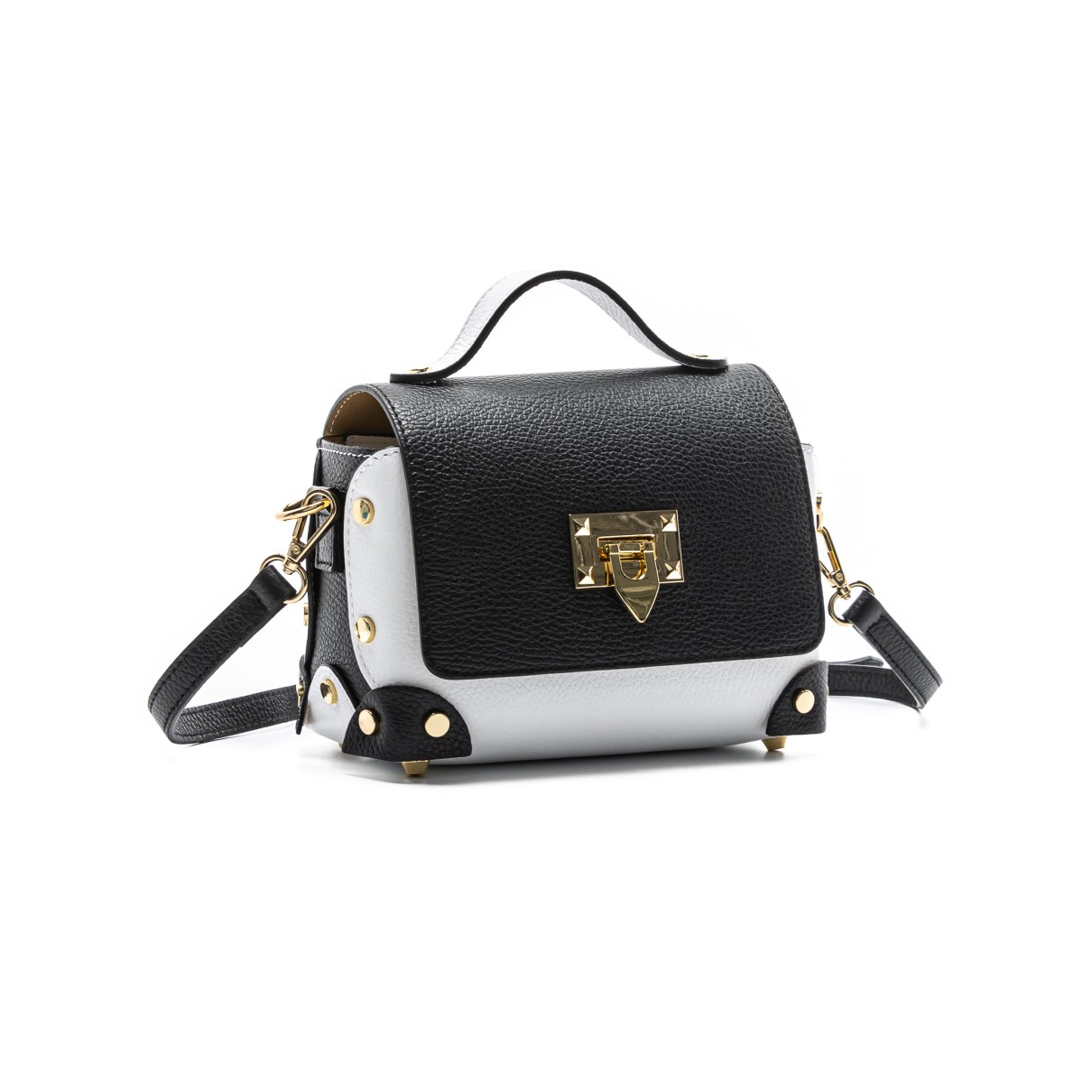 Geanta de mana din Piele Naturala GD32 Negru-Alb | Forseti