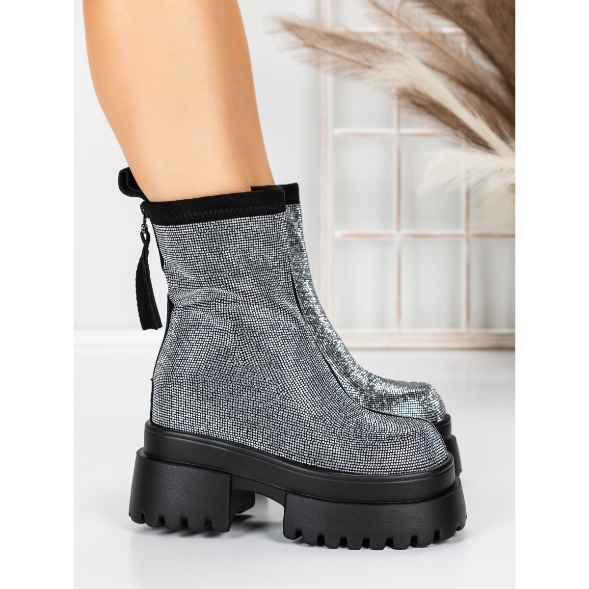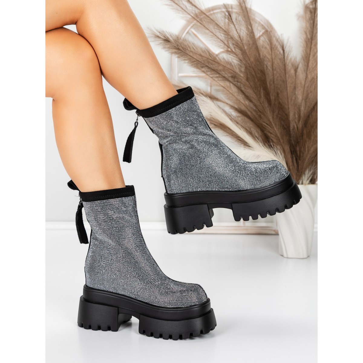 Ghete Dama cu Platforma 5SJN23 Negru-Alb | Mei