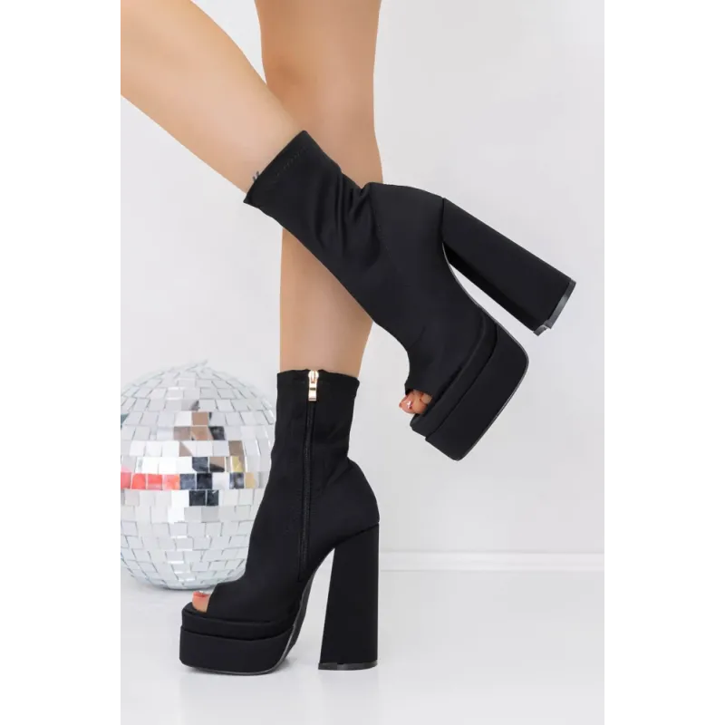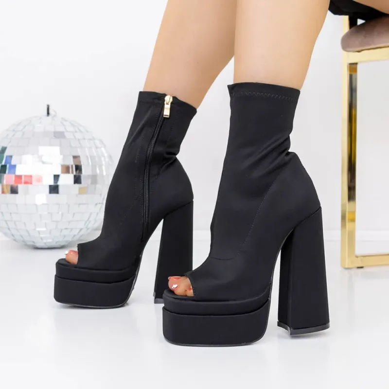 Botine Dama cu Toc gros si platforma 3LB6 Negru Reina