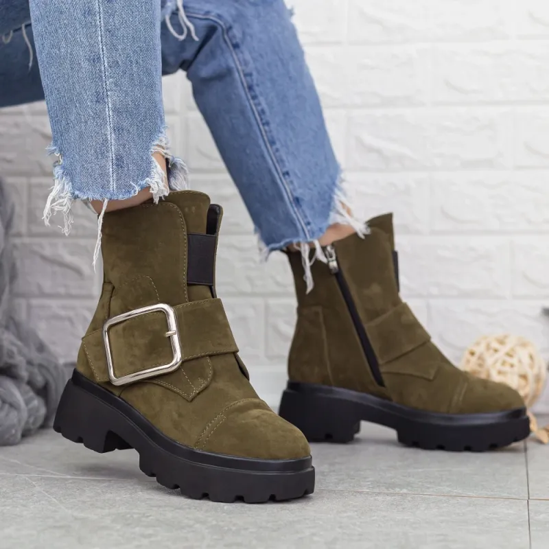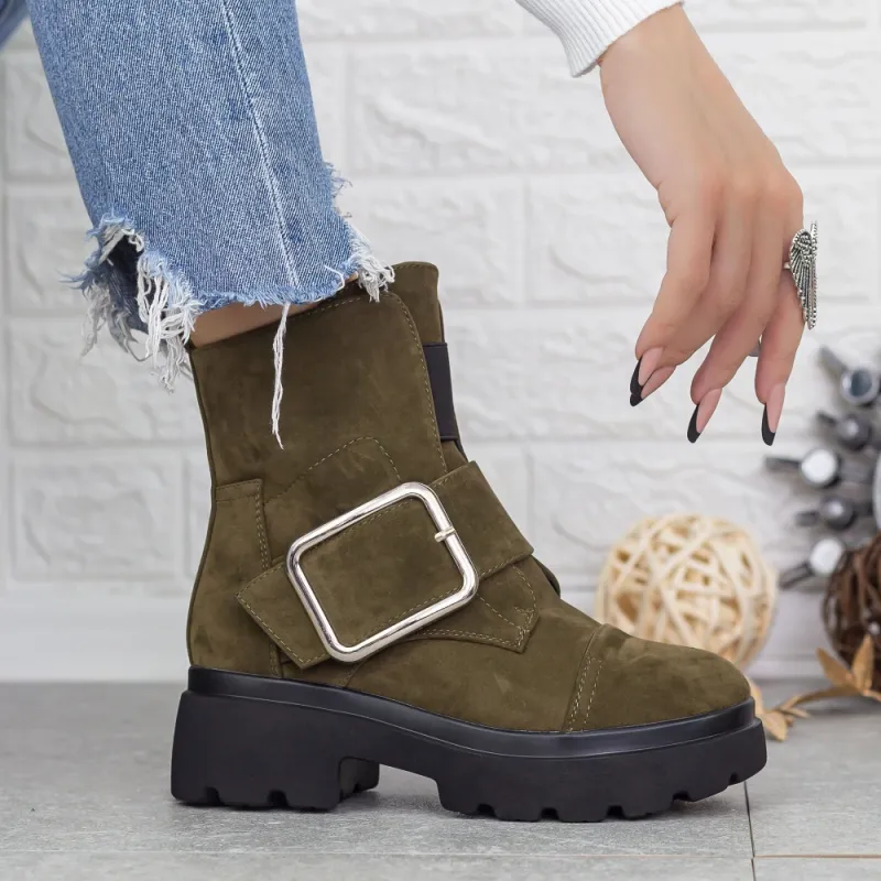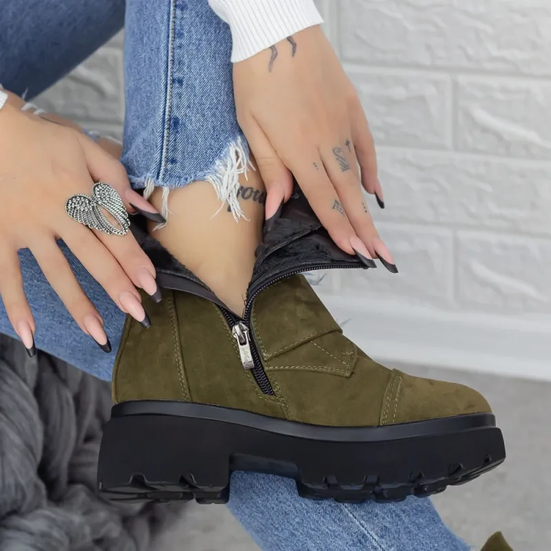 Ghete Dama cu Platforma 2MX383A Verde olive-Negru Mei