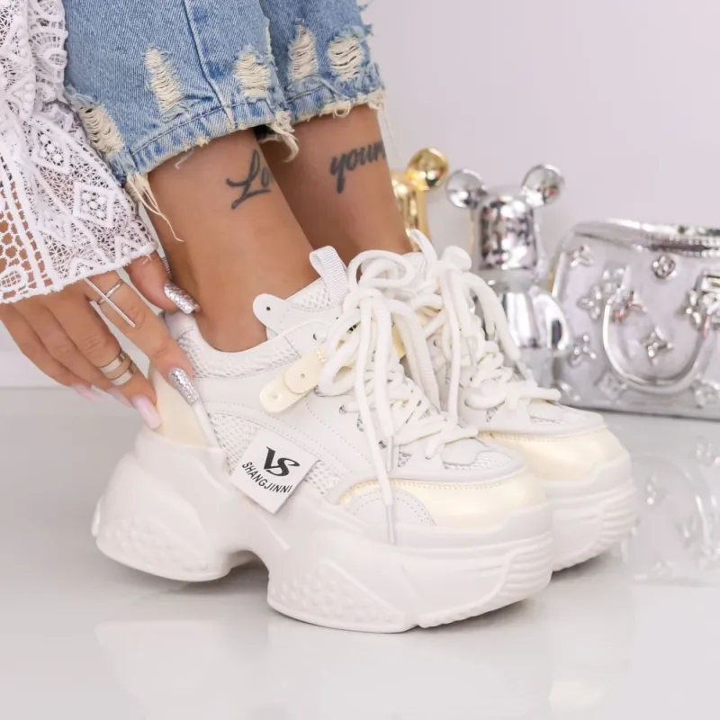 Pantofi Sport Dama cu Platforma 6168-2 Bej | Mei