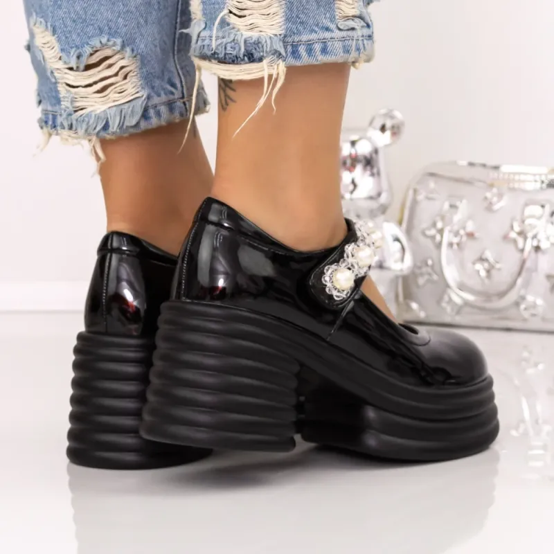 Pantofi cu Toc gros si Platforma 39-1 Negru | Mei