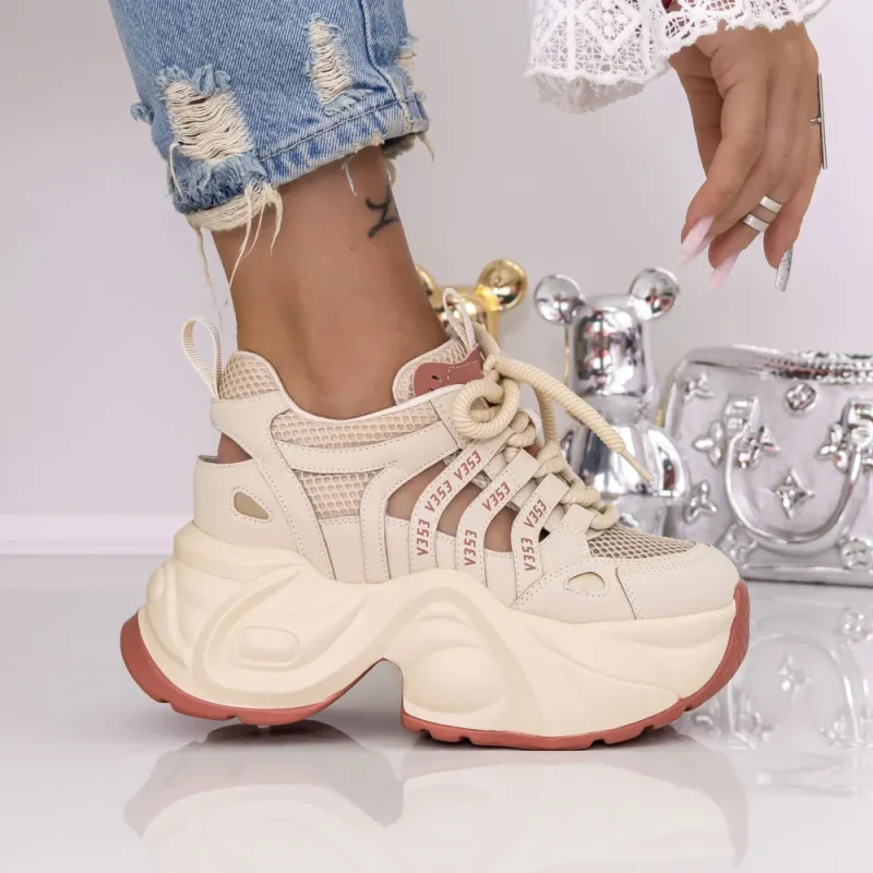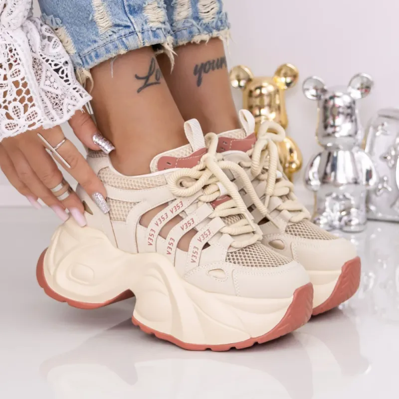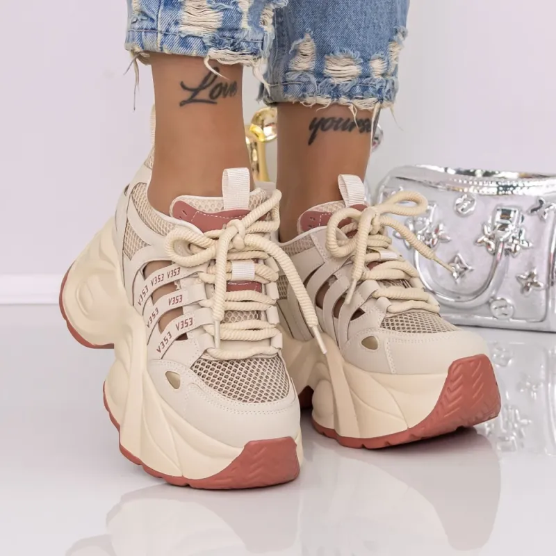 Pantofi Sport Dama cu Platforma 0098-120 Maro deschis | Mei