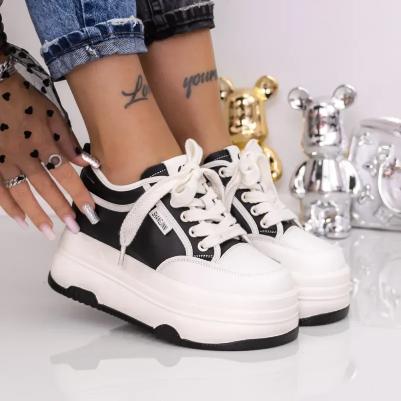 La Reina găsești Pantofi Sport Dama cu Platforma 1659-1 Negru | Mei. Culoarea Negru vibrant, împreună cu materiale de calitate și design modern, te vor impresiona! Reina este un magazin online care oferă o gamă variată de produse pentru femei, bărbați și copii. Aici găsești încălțăminte, îmbrăcăminte, genți și accesorii. Livrarea este rapidă, iar termenul de retur este de 30 de zile.