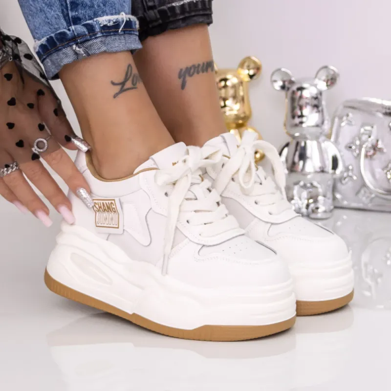 Pantofi Sport Dama cu Platforma 995-1 Alb | Mei