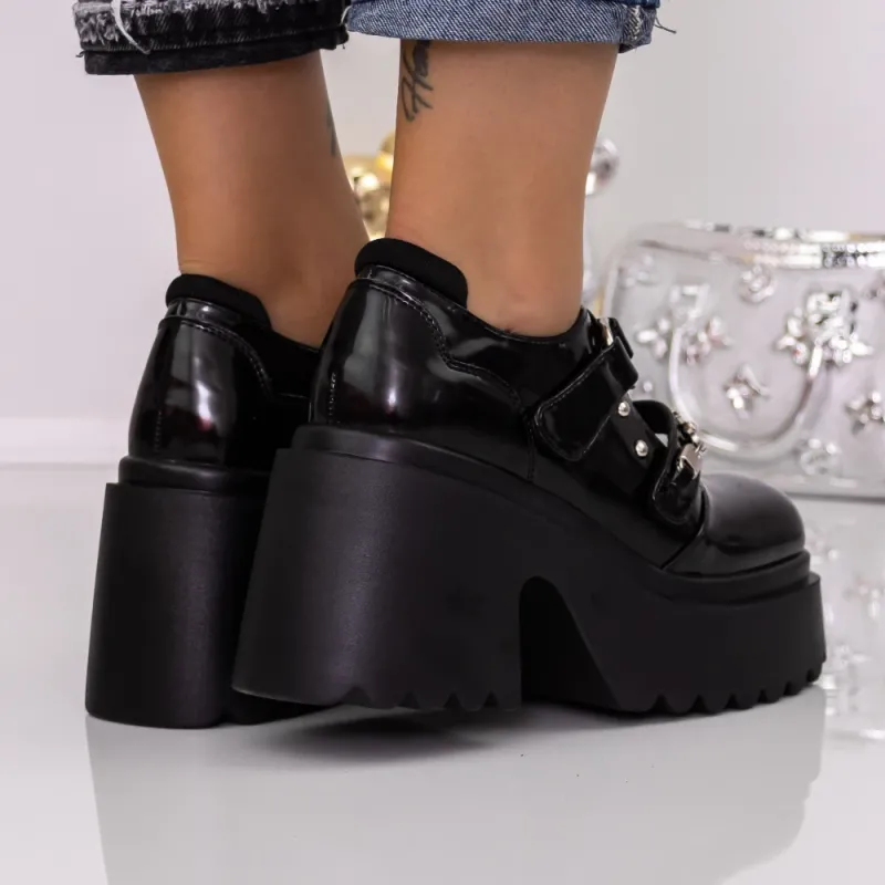 Pantofi cu Toc gros si Platforma 7099-5 Negru | Mei