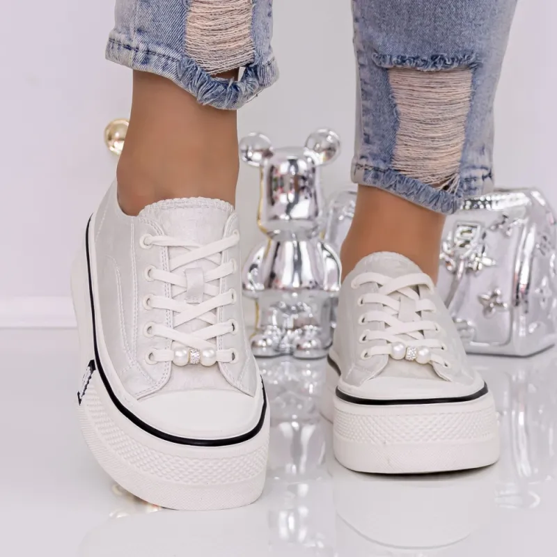 Pantofi Sport Dama cu Platforma 3AL20 Alb | Mei
