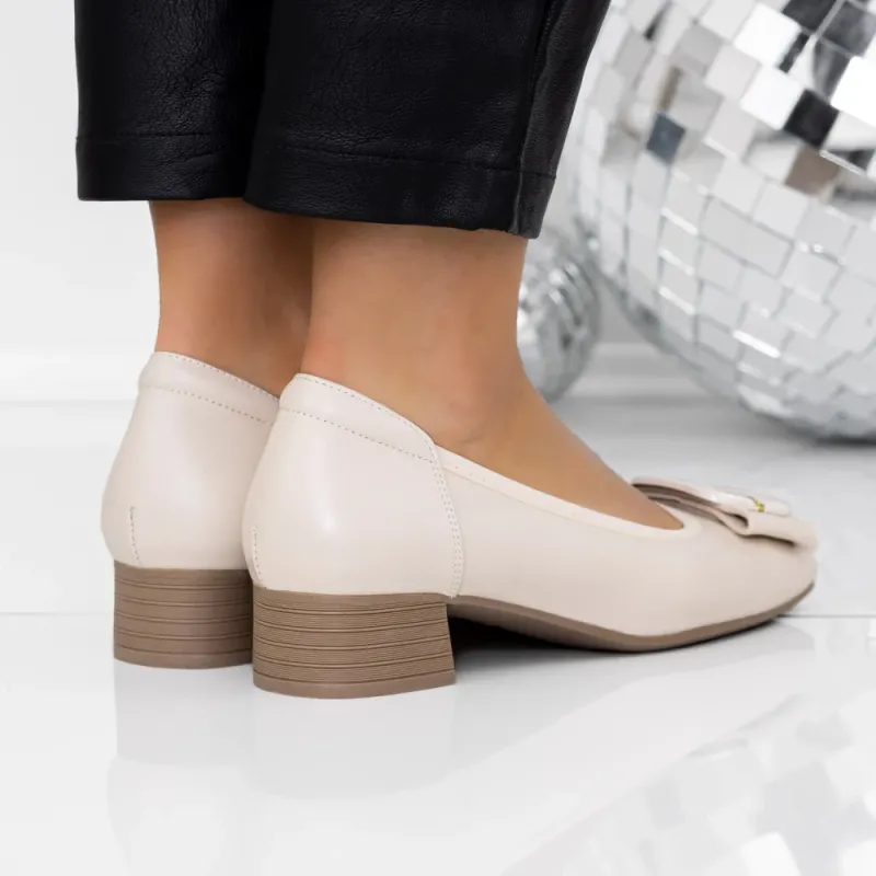 Pantofi cu Toc mic 61131 Bej | Mei » Reina.Ro