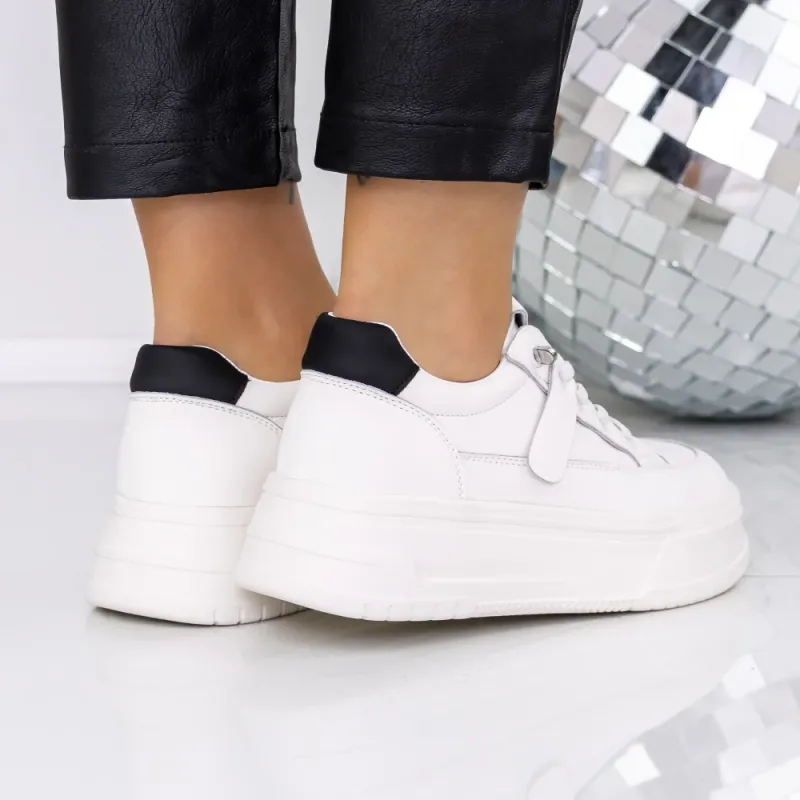 Pantofi Sport Dama cu Platforma T8A675-8 Alb-Negru | Mei