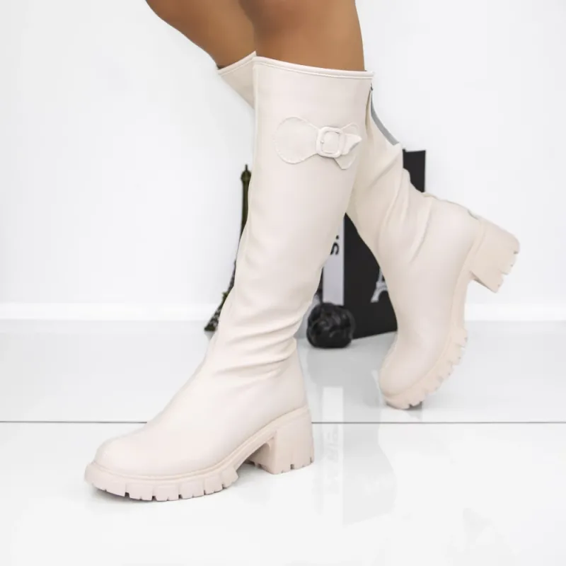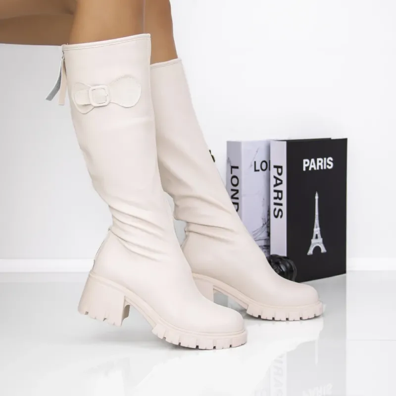 Cizme Dama cu Toc gros 3AL58 Bej | Mei