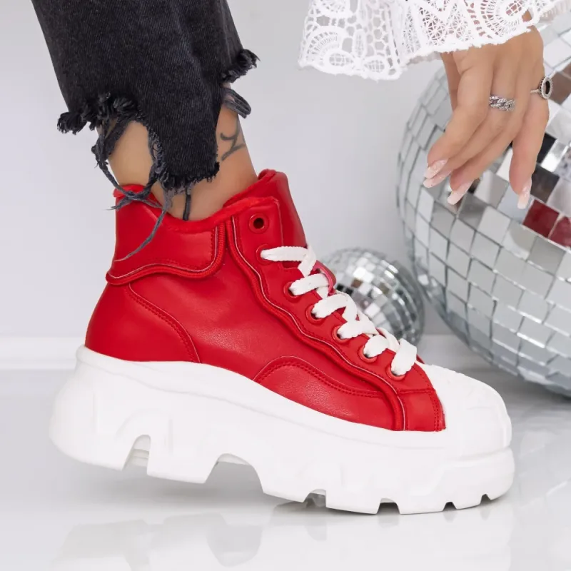 La Reina găsești Ghete Dama cu Platforma 3AL11 Rosu | Mei. Culoarea Rosu vibrant, împreună cu materiale de calitate și design modern, te vor impresiona! Reina este un magazin online care oferă o gamă variată de produse pentru femei, bărbați și copii. Aici găsești încălțăminte, îmbrăcăminte, genți și accesorii. Livrarea este rapidă, iar termenul de retur este de 30 de zile.