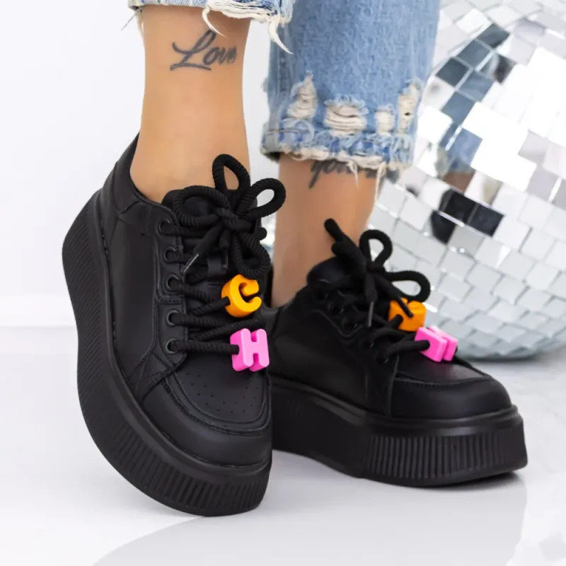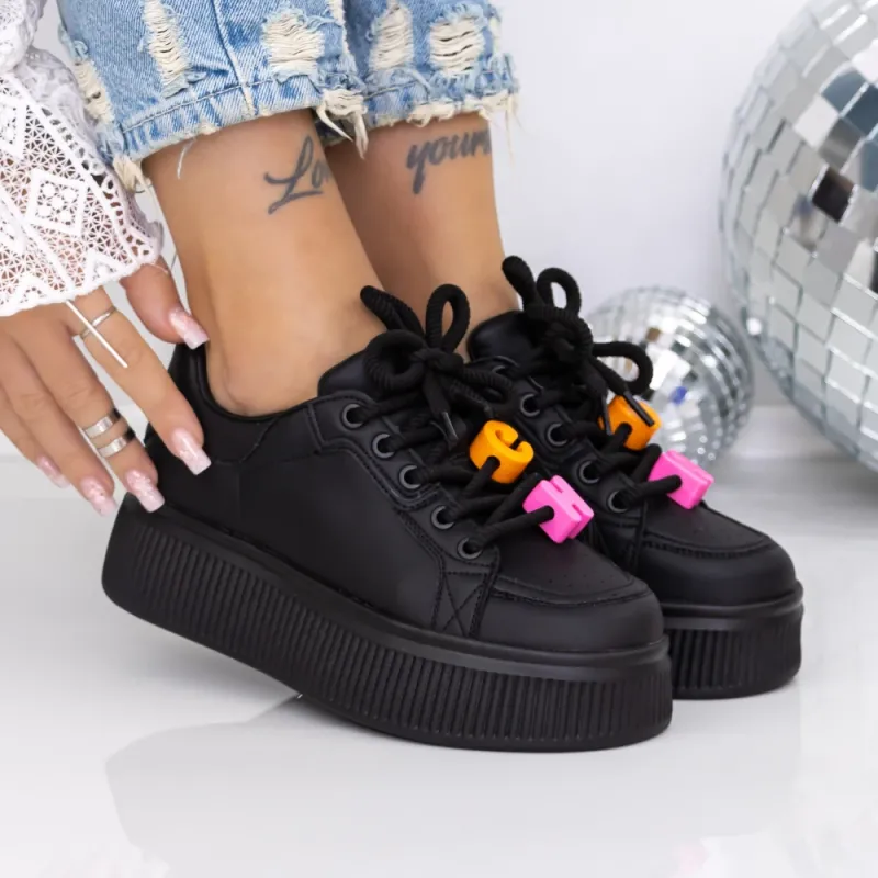 Pantofi Sport Dama cu Platforma 3FLM9 Negru | Mei