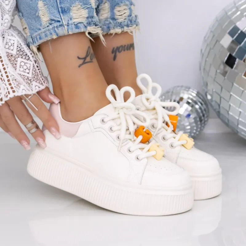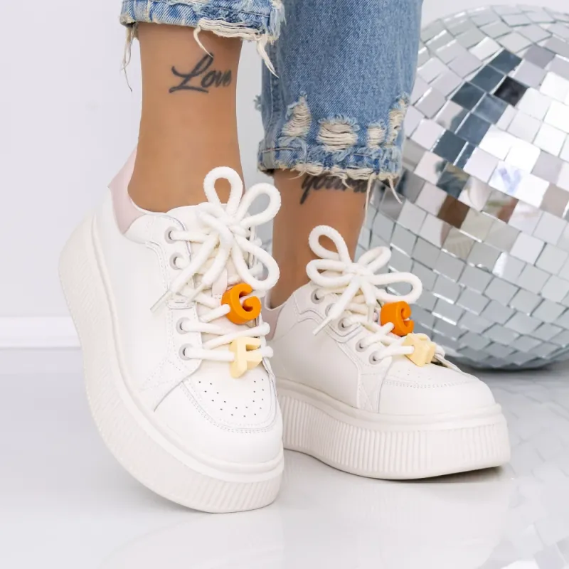 Pantofi Sport Dama cu Platforma 3FLM9 Bej | Mei