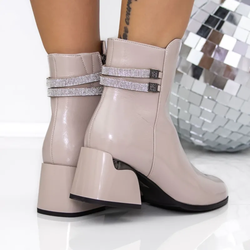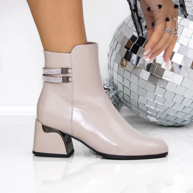 Botine Dama cu Toc gros 3AD3 Bej | Mei » Reina.Ro