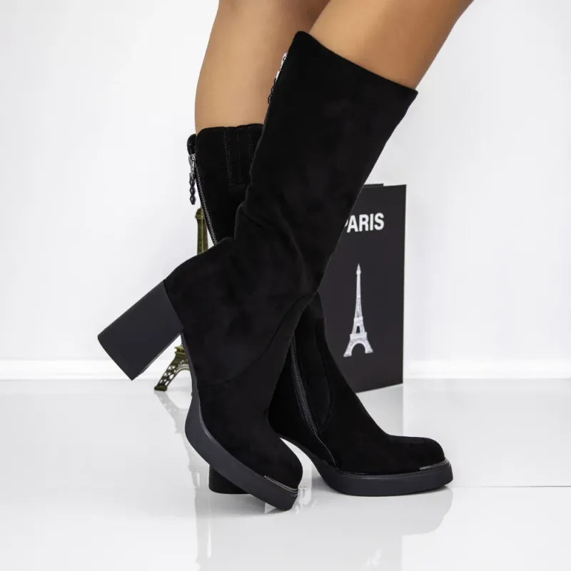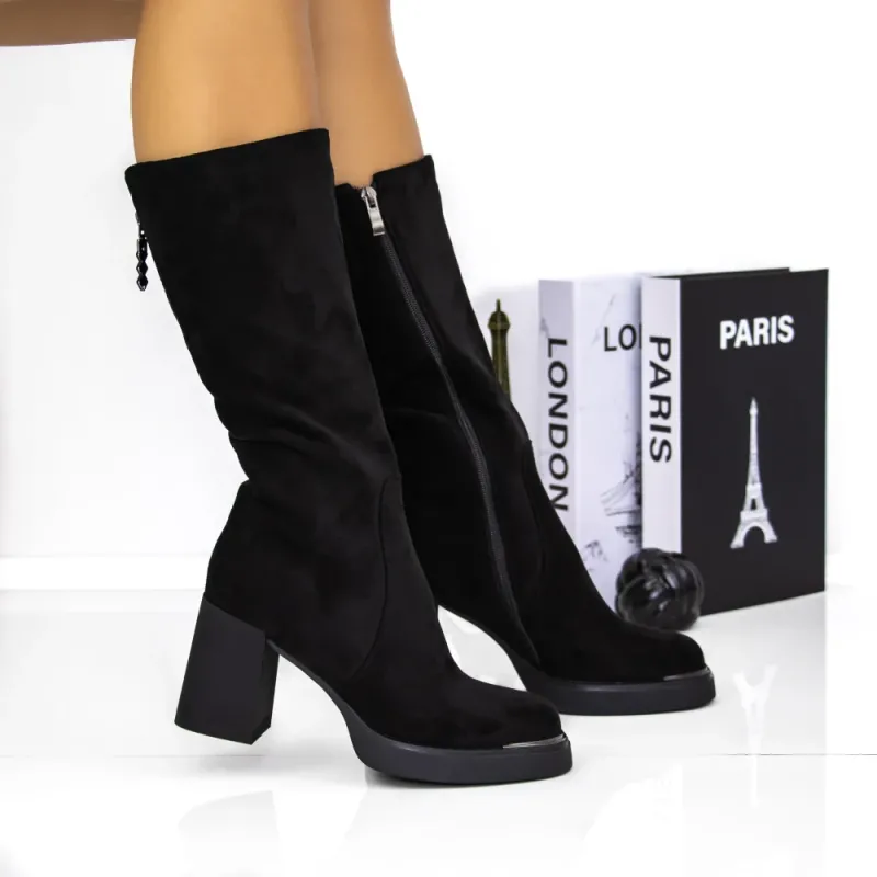 Cizme Dama cu Toc gros 3AWZ3 Negru | Mei