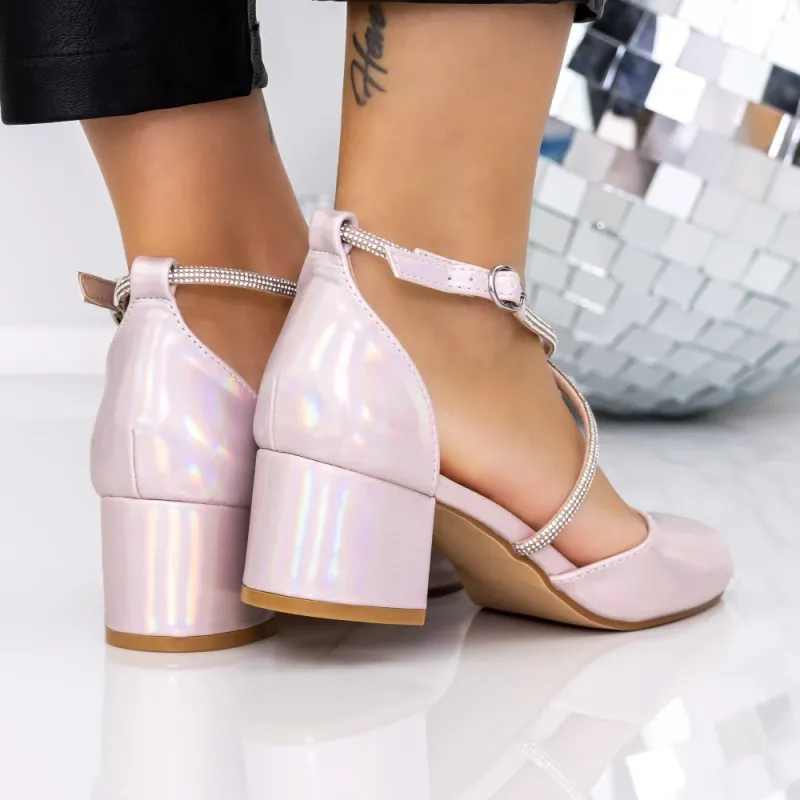 Pantofi cu Toc Gros 2YXD62 Champagne | Mei » Reina.Ro