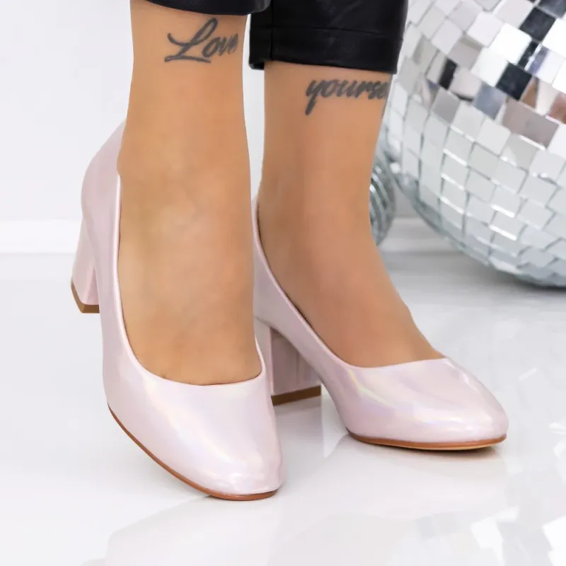 Pantofi cu Toc Gros XKK251 Champagne | Mei