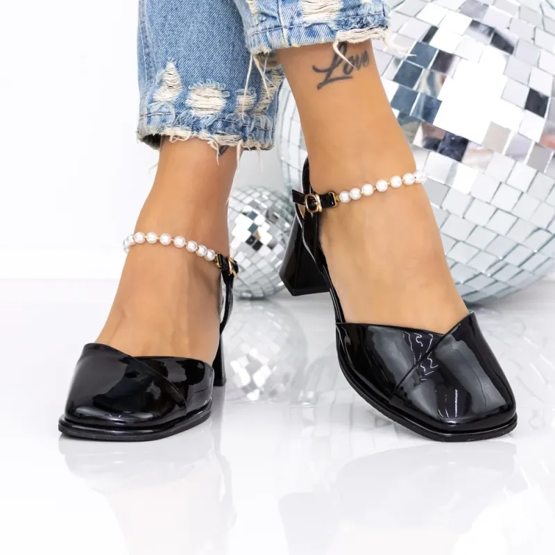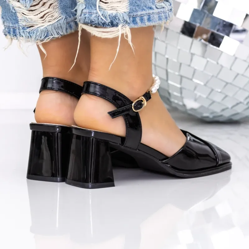 Pantofi cu Toc Gros 1153-3 Negru | Mei